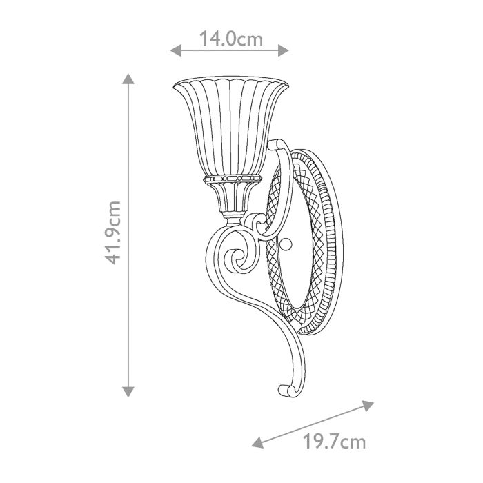 Charming design, exquisite taste and classic detail inspire this European style collection. Stunning curved arms are hand finished with delicate features. India Scavo glass bloom at its opening to create a lovely glow.