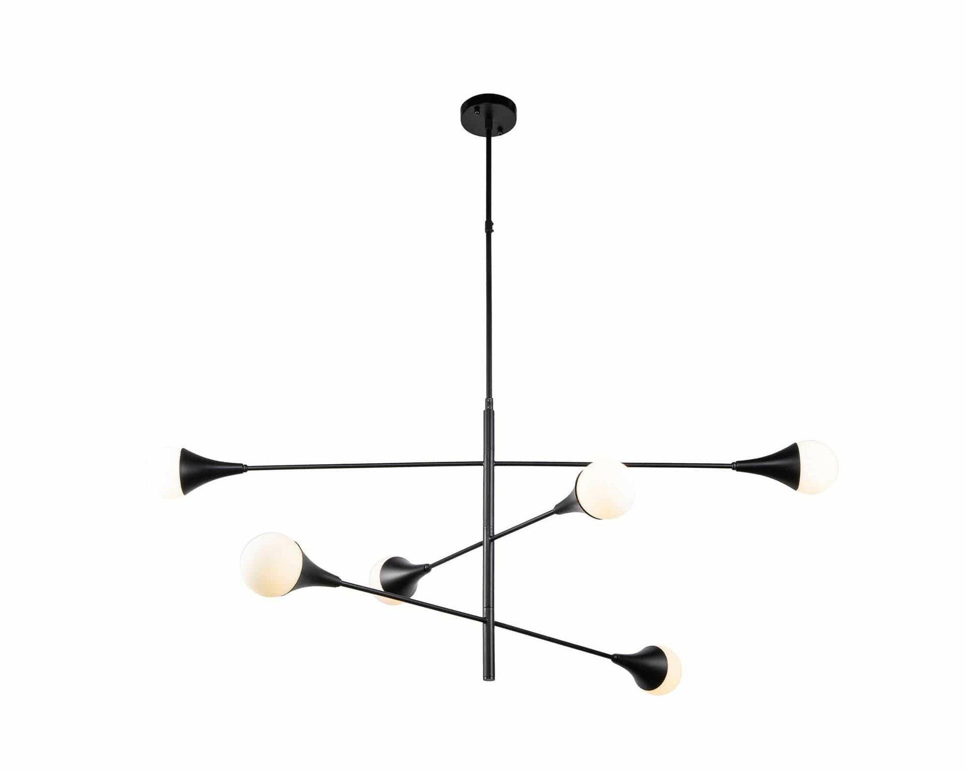 Enhance your interior with this Matt Black Steel, White Glass Ensure that ultra-modern mood piece, complete with the Kendal Pendant Lamp. Channelling a futuristic feel, the Kendal evokes mid-century aesthetics with its slender, streamlined design. Flaunting glass spheres suspended by sturdy arms, this pendant is evocative of planets on an orbital path. (Light bulbs not included.. Requires 6 × LED G9,Max 5W).