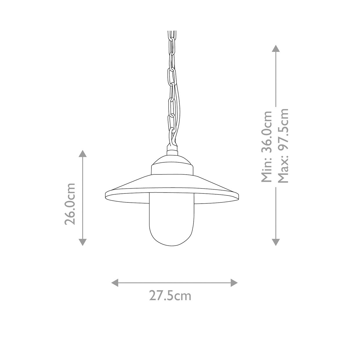 Klampenborg is a classic Scandinavian chain lantern. The core metal is 304 grade stainless steel and is then painted with powder coating for durability. Available in Black finish, IP44 rated and offered with a 15 year guarantee.