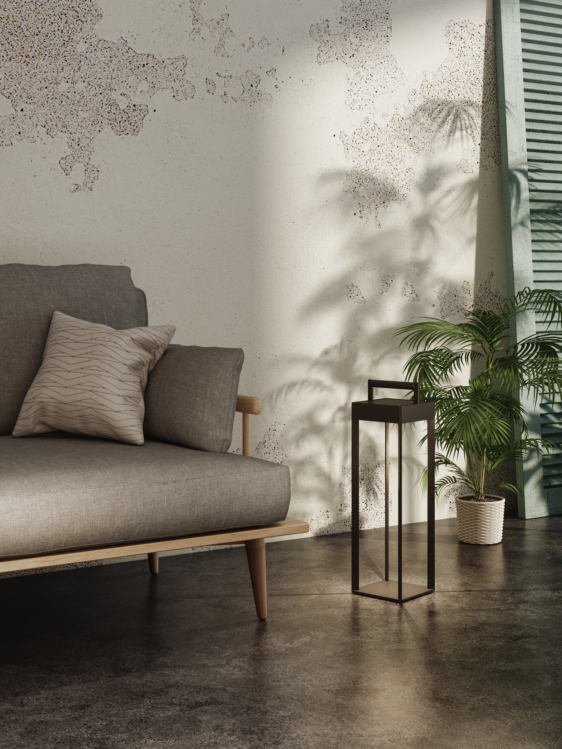 The Kuro 250 is our first portable, solar-powered, rechargeable outdoor light. An invaluable addition to any hotel terrace or domestic garden, this contemporary lantern has three brightness settings and a hidden LED that eliminates glare while focusing light downwards. Its pared-back look blends effortlessly with any decorating style and it can be used both outdoors and indoors thanks to an additional USB charging source.