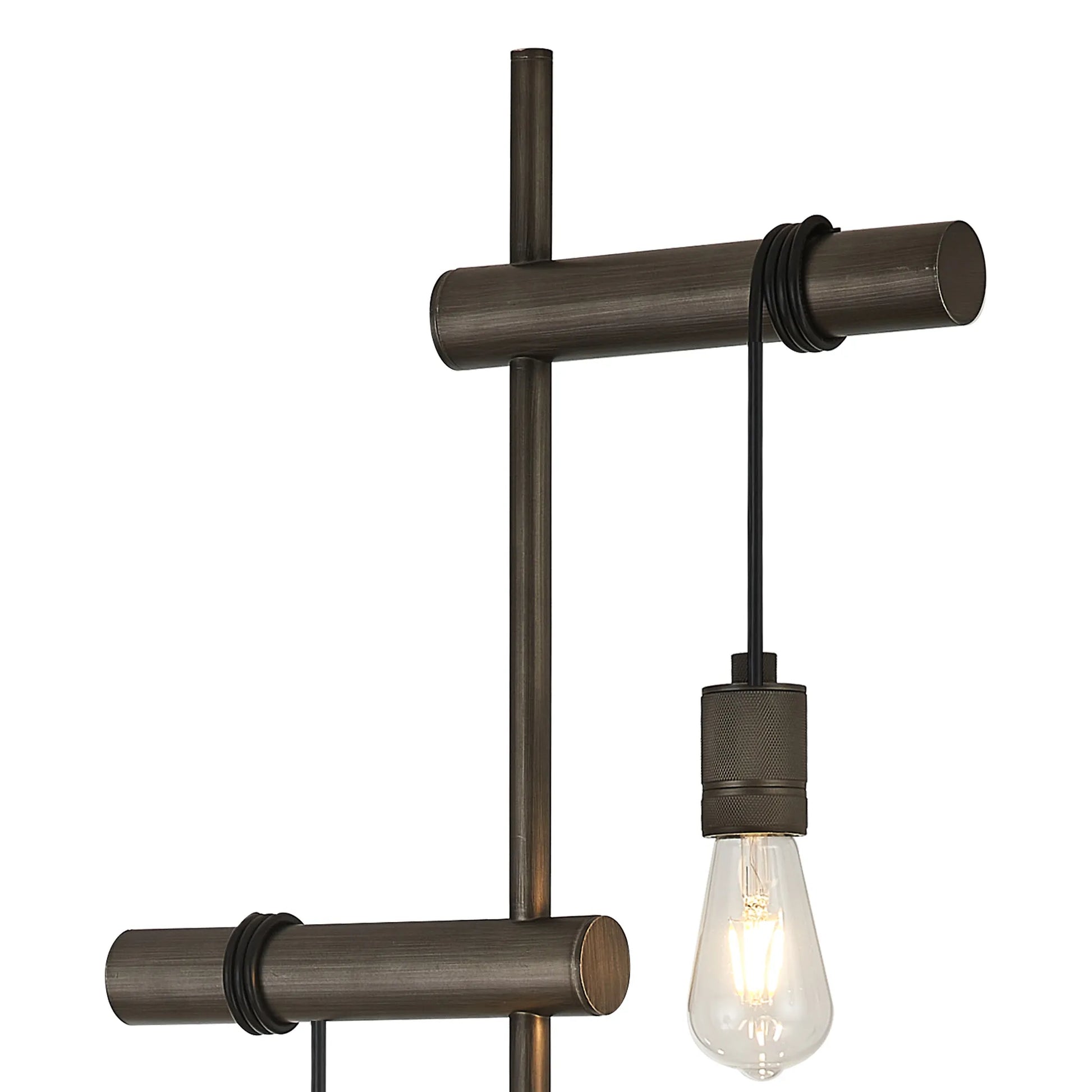 Combining the natural imagery of vines around trees with industrial metallic finishes. The painted matt bronze or pewter frames are wrapped with the black cable and amplified by the textured knurled effect on each E27 lampholder. Available as a variety of pendants and complementing wall lamp, table or floor lamp, Kyoto blends design and industry.