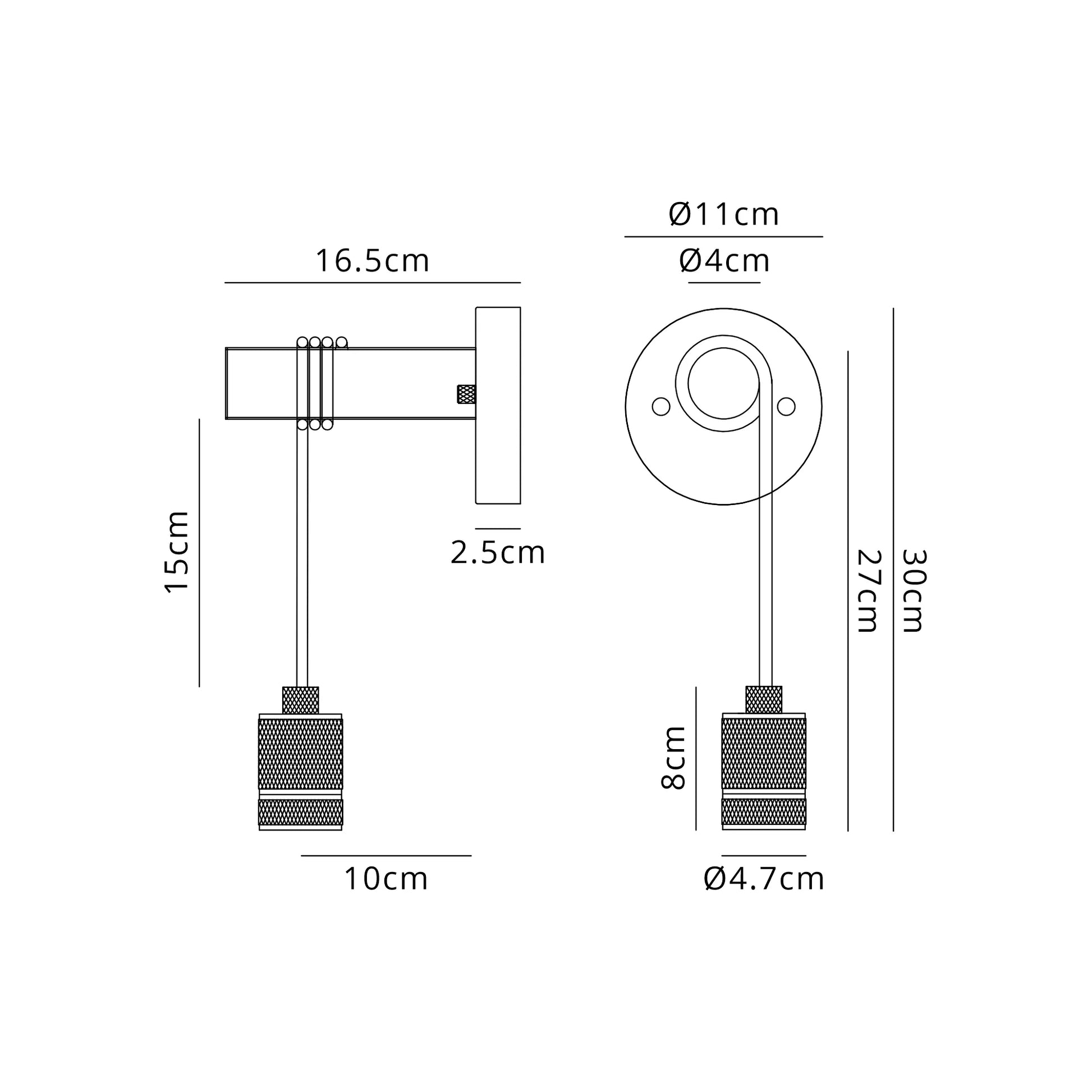Kyoto Wall Light, Without Shade, 1 x E27- Painted Matt Bronze/ Pewter Finishes