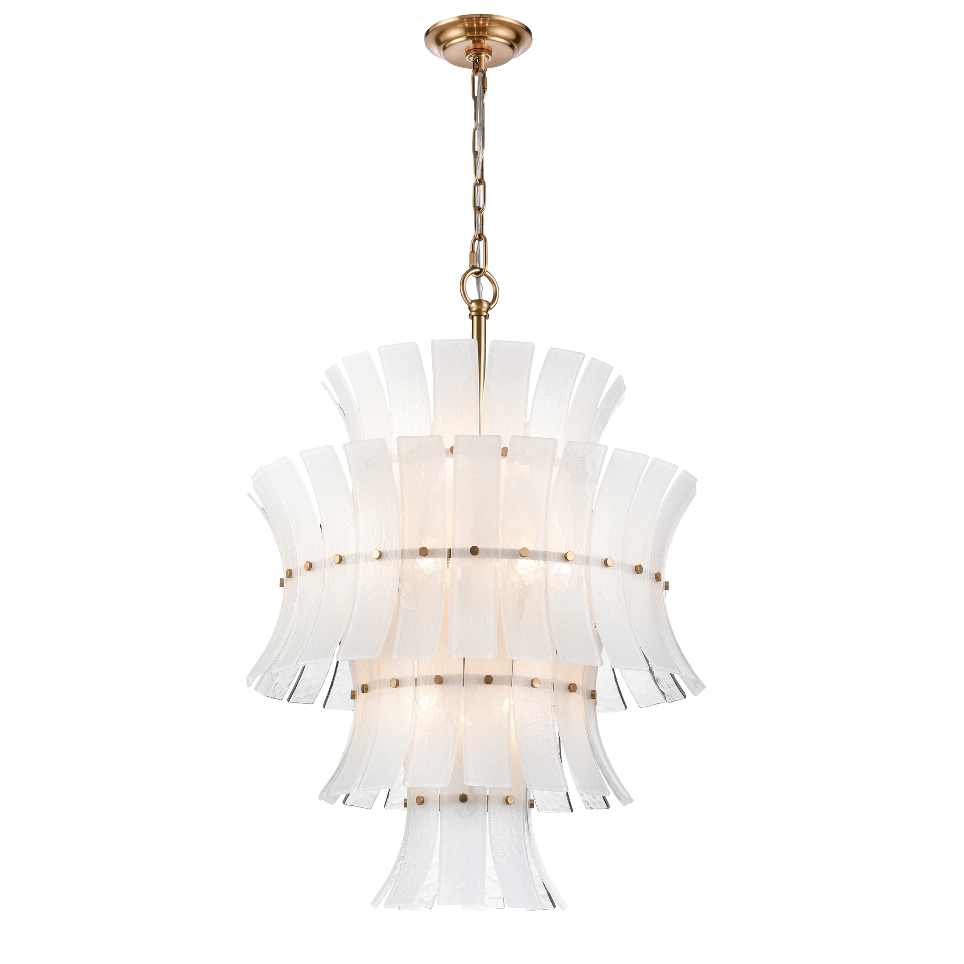 – Emphasize the luxurious character of the space with a combination of brushed brass and frosted glass shades.