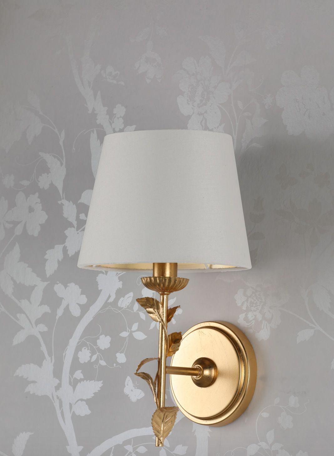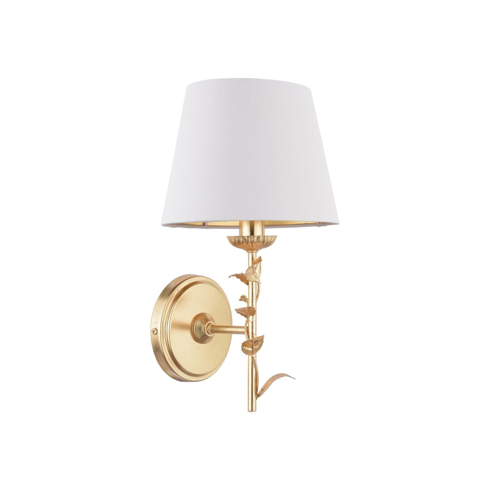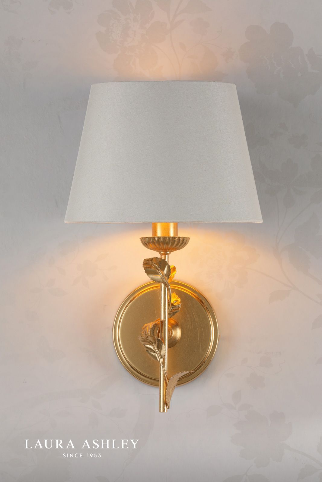 The Halton Wall Light by Laura Ashley will create an on-trend artisan statement in your home. This striking wall light features a floral effect finished in gold leaf. The lampshade is made in an cream cotton with a gold relective inner in a tapered drum shape.