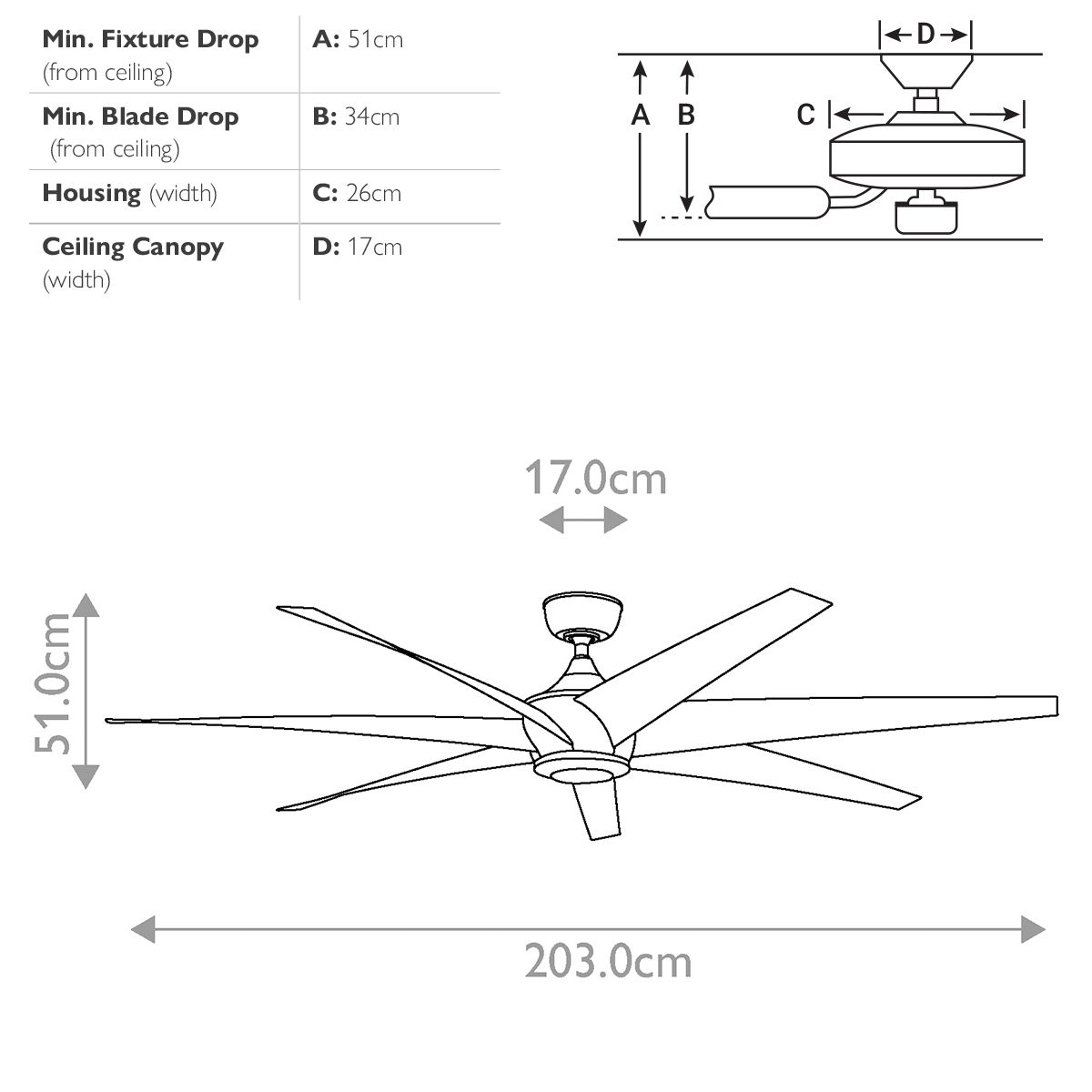 | Downrod Included | 1 x 203mm |