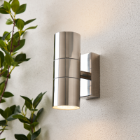 201 Stainless Steel Construction with a durable Powder coated finish, Suitable for Outdoor Use, 2 x 7w Max LED GU10, IP65 Rated.