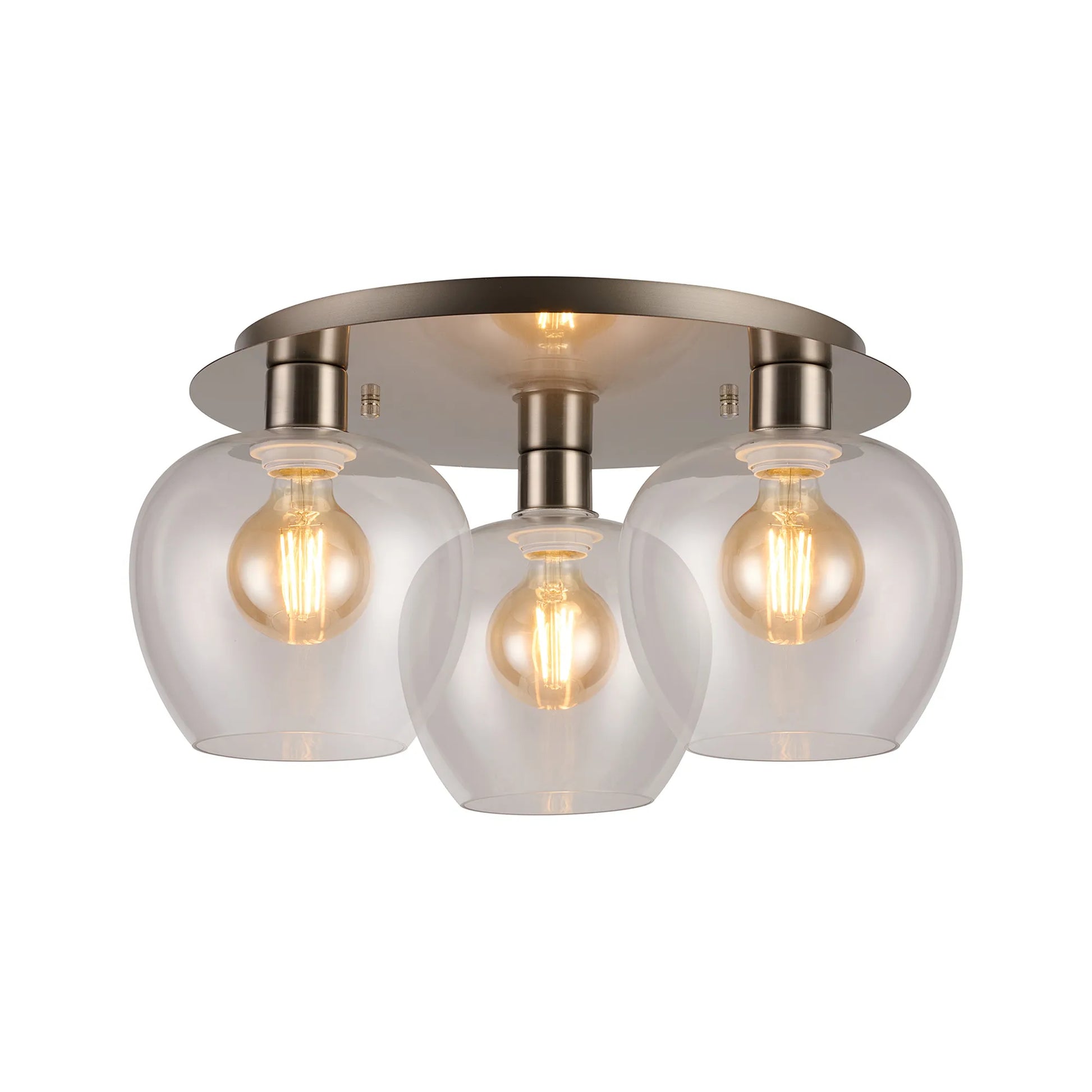 Lori 40cm 3Lt Round Ceiling Flush Light- Satin Nickel w Various Finishes