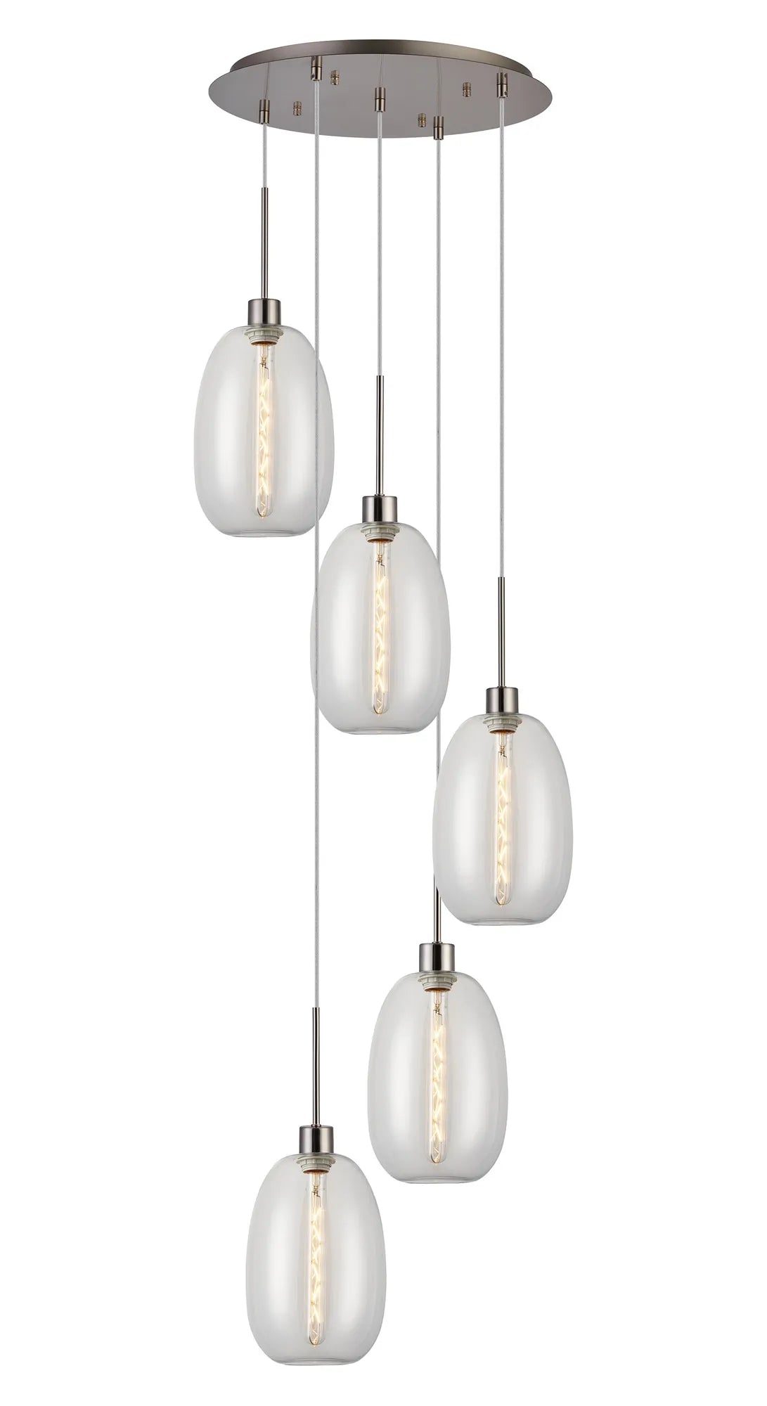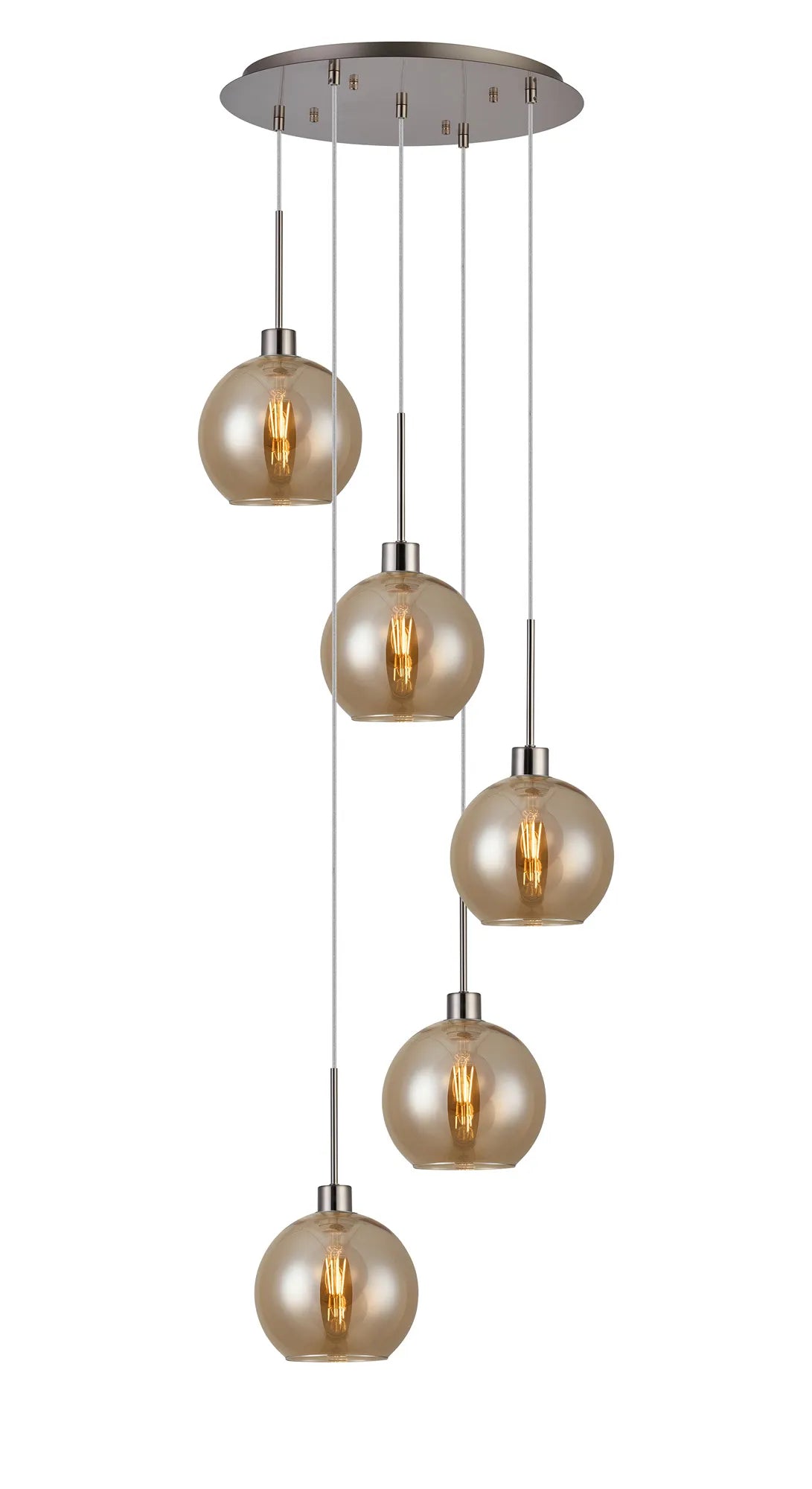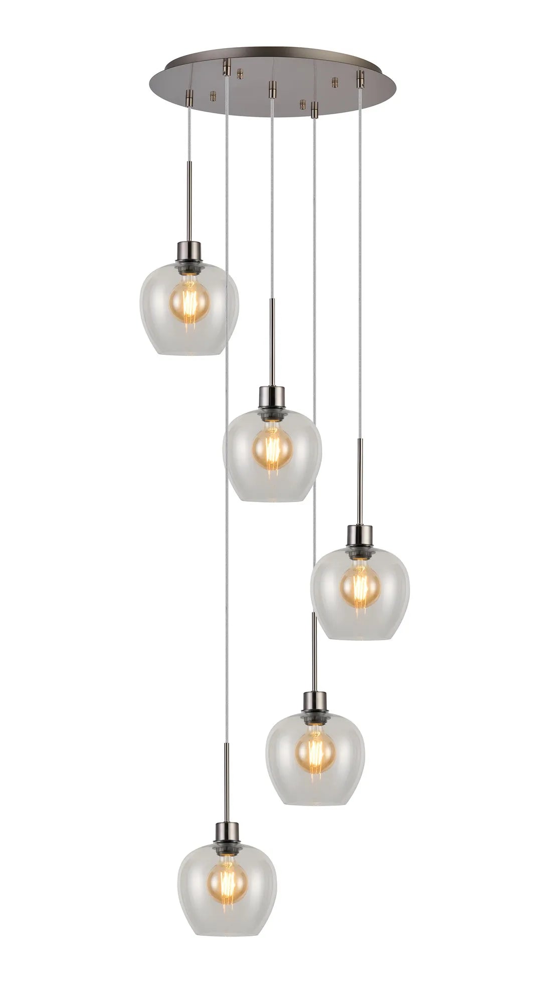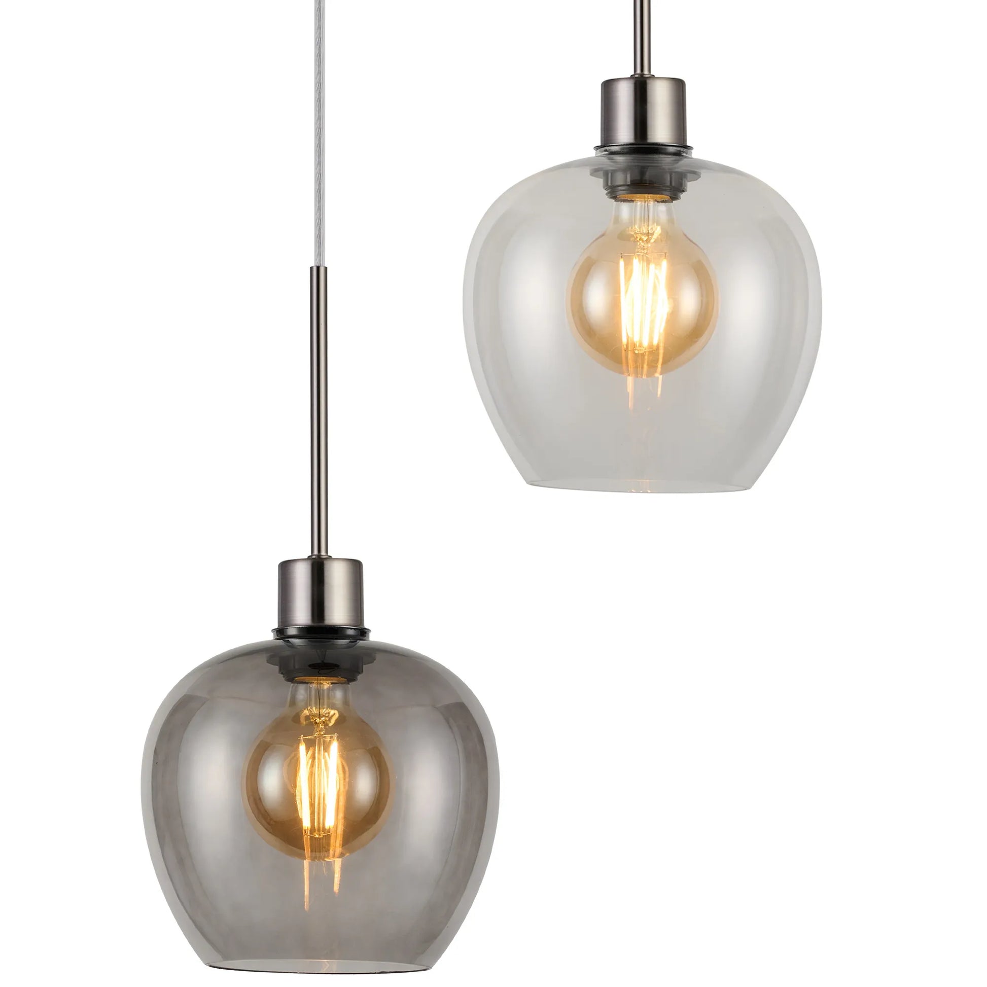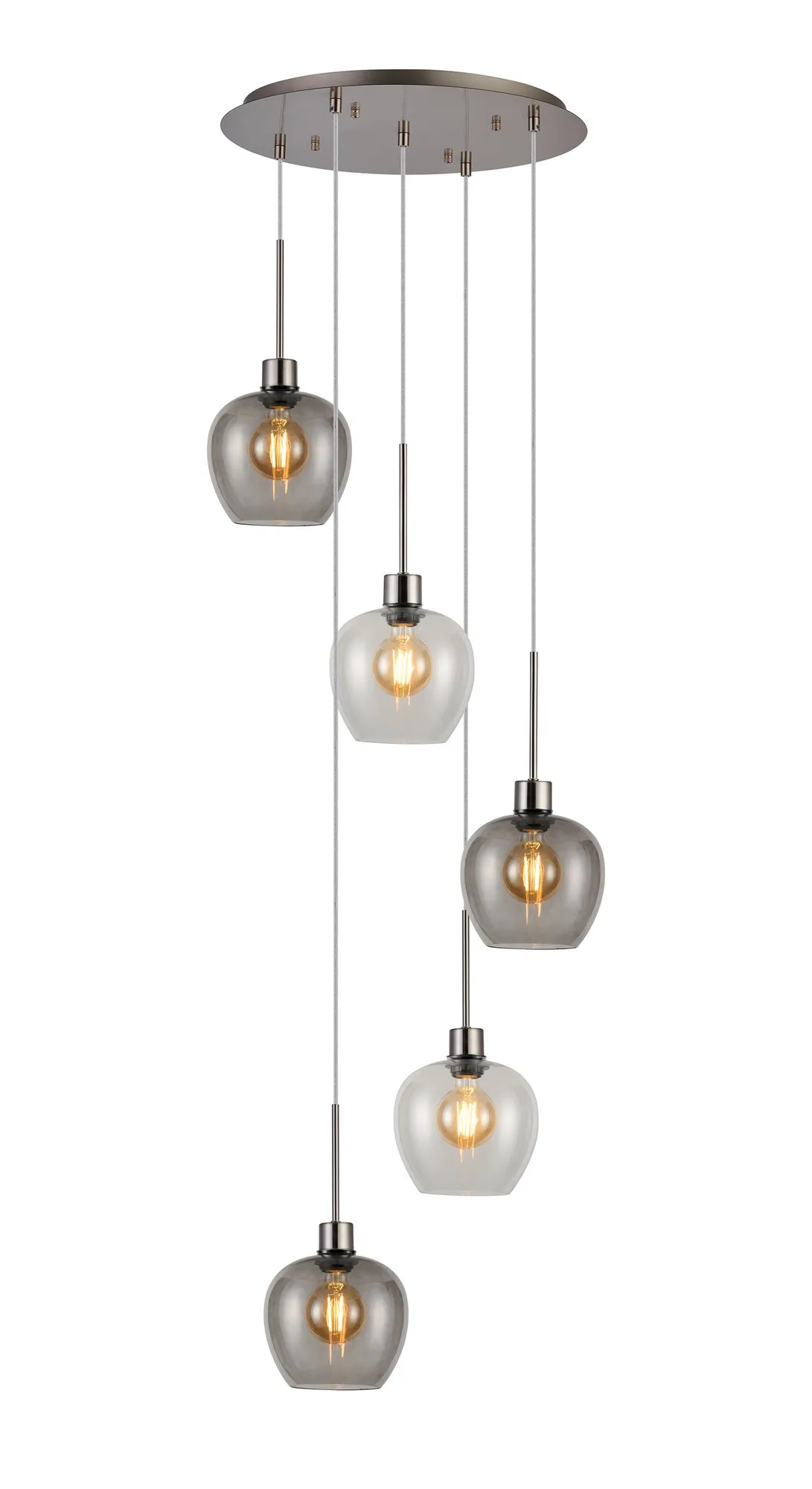 Lori 5 Light Cluster Pendant Adjustable E27- Satin Nickel w Various Glass Finishes
