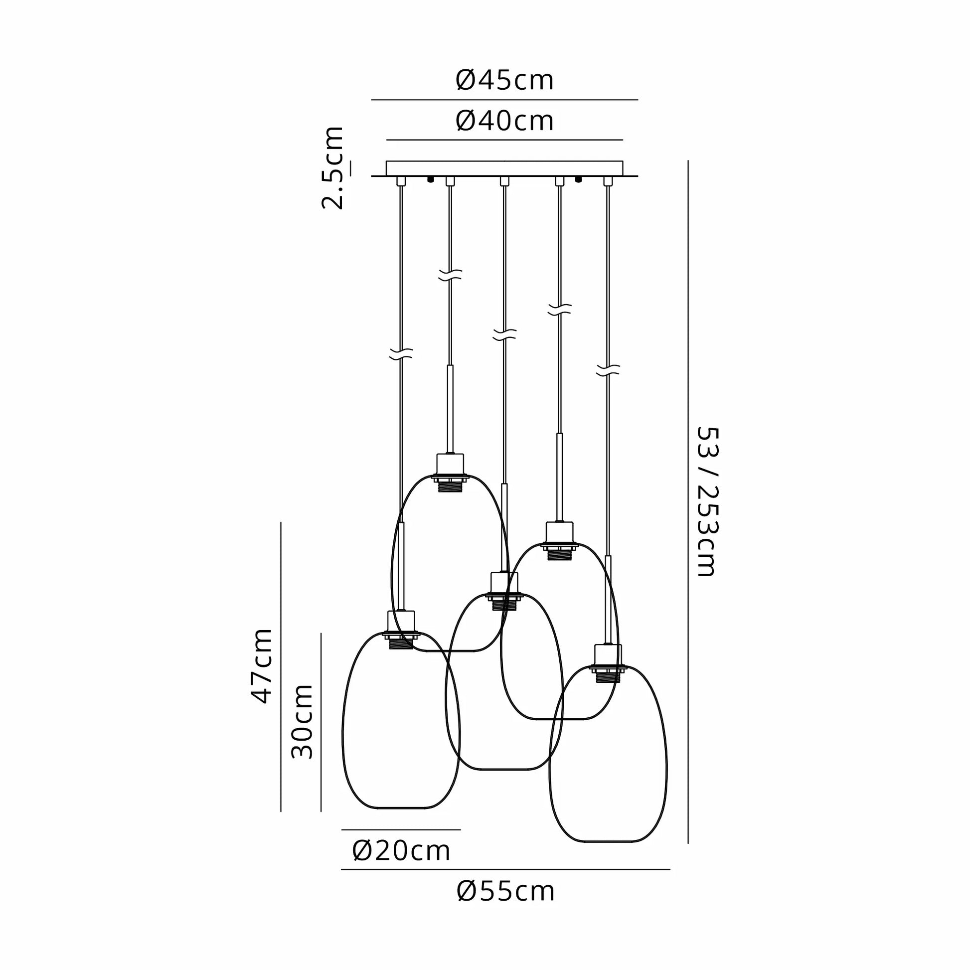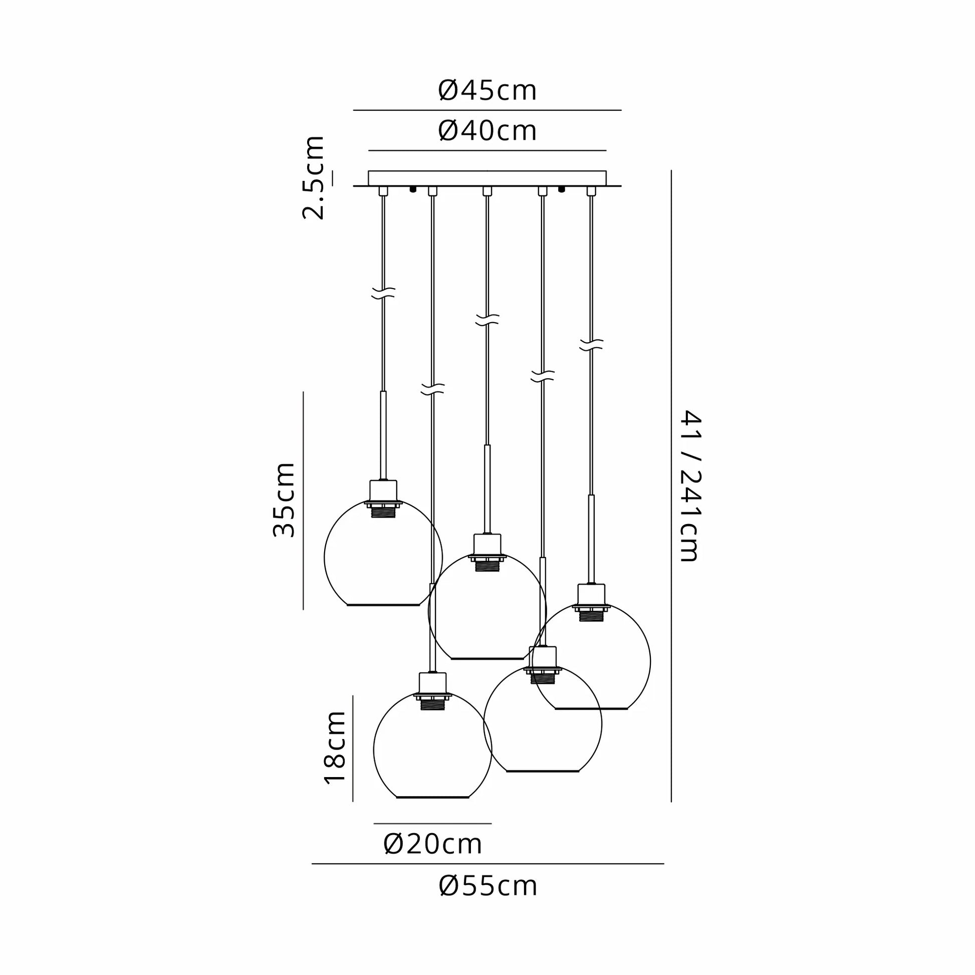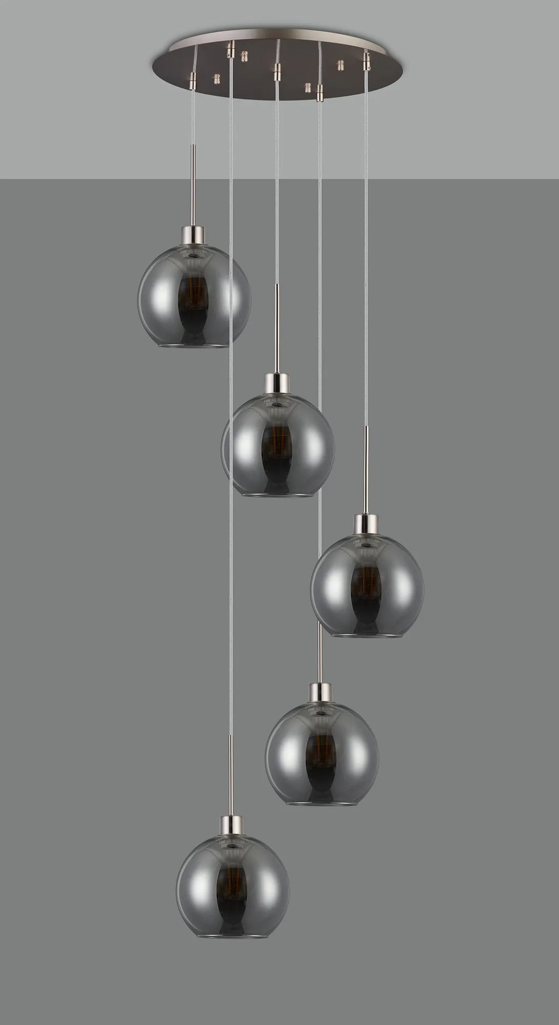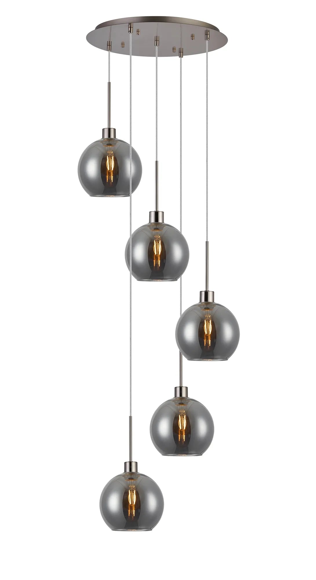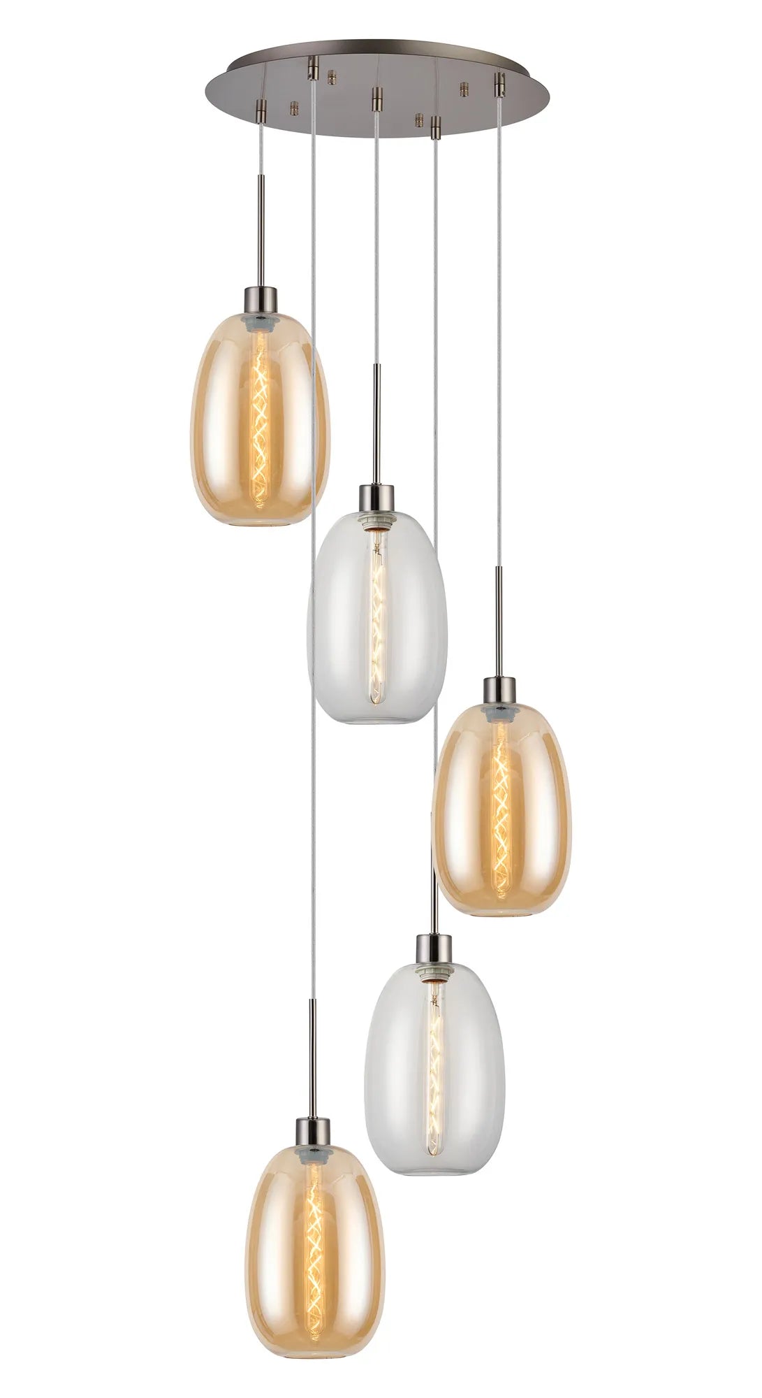 Lori 5 Light Cluster Pendant Adjustable E27- Satin Nickel w Various Glass Finishes