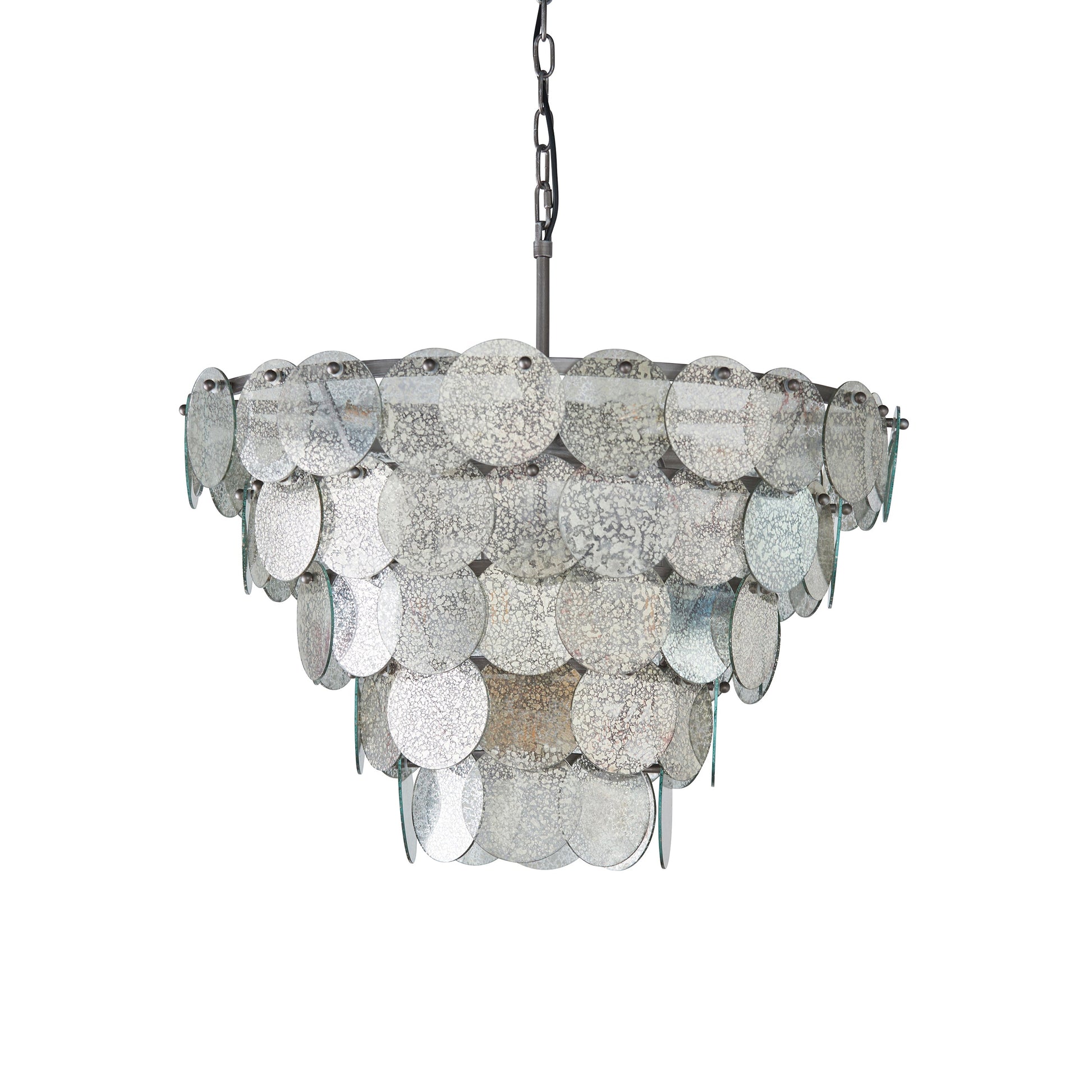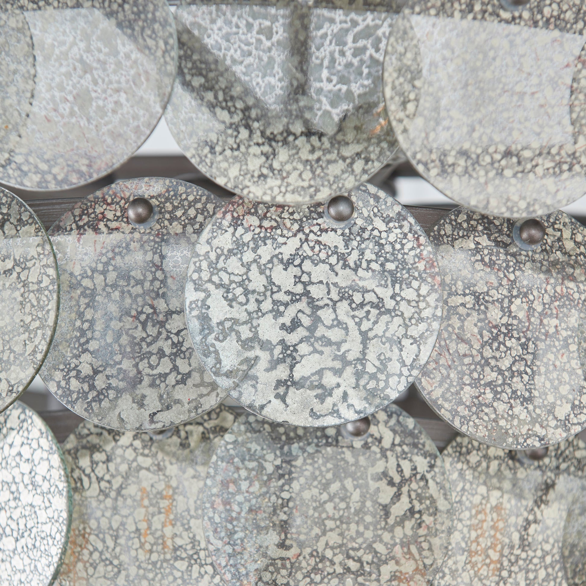 A dramatic timeless classic pendant and wall light, formed form ornate discs of mercury effect plated glass,, individually fastened to a tiered antique finish frame.