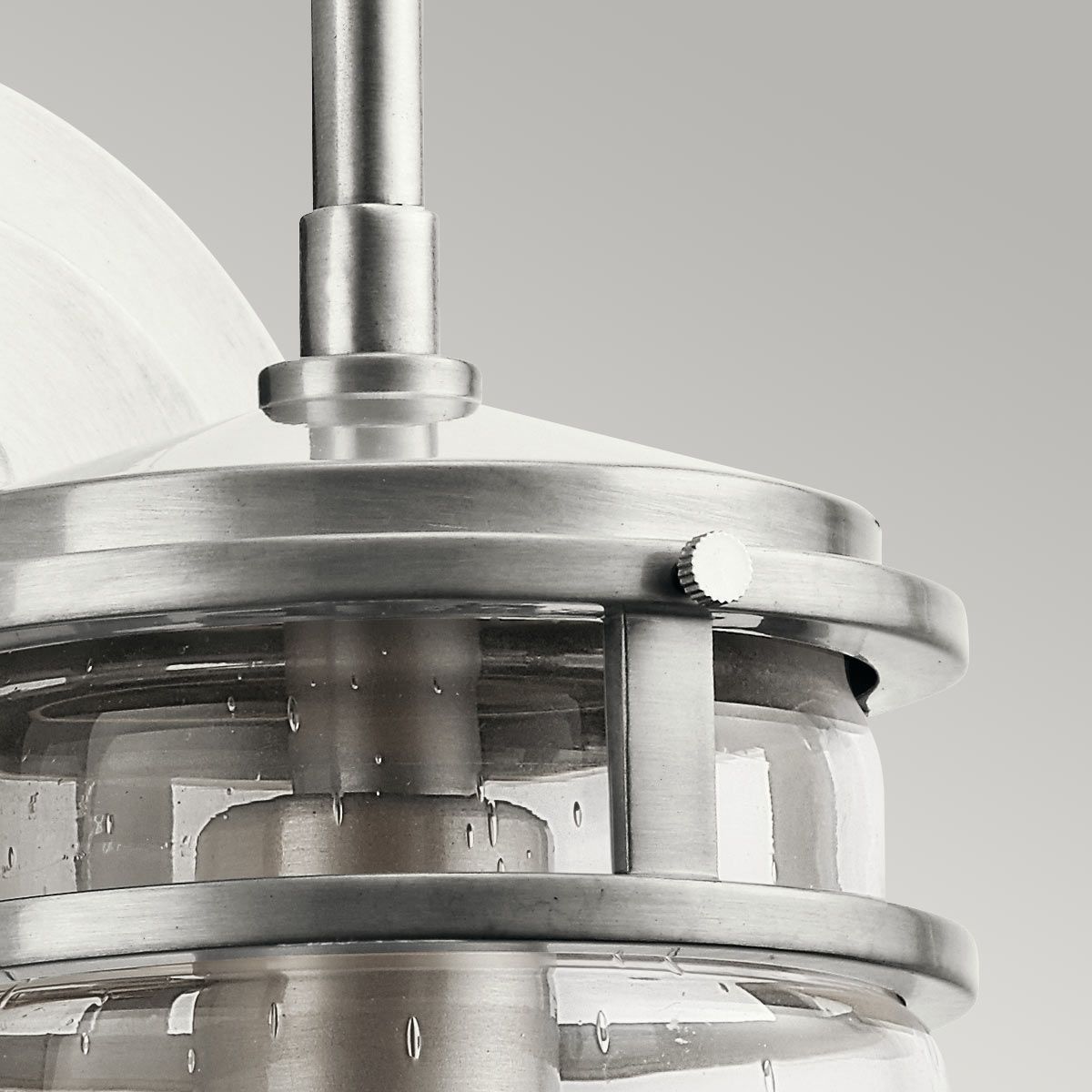 The Lyndon collection combines a simple streamline design with an emphasis on traditional details. Offered in a beautiful Brushed Aluminium finish with clear seedy glass, these fixtures can effortlessly blend with your existing décor.