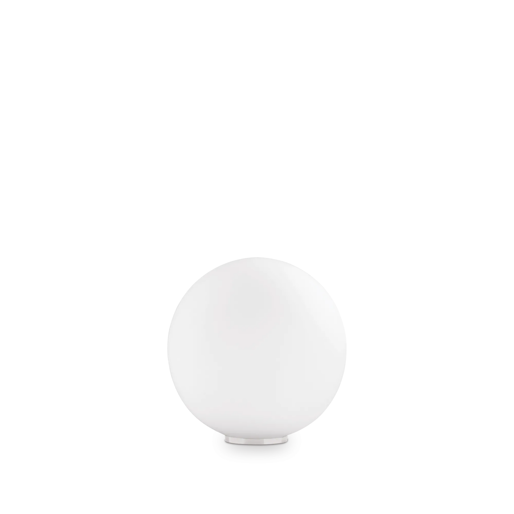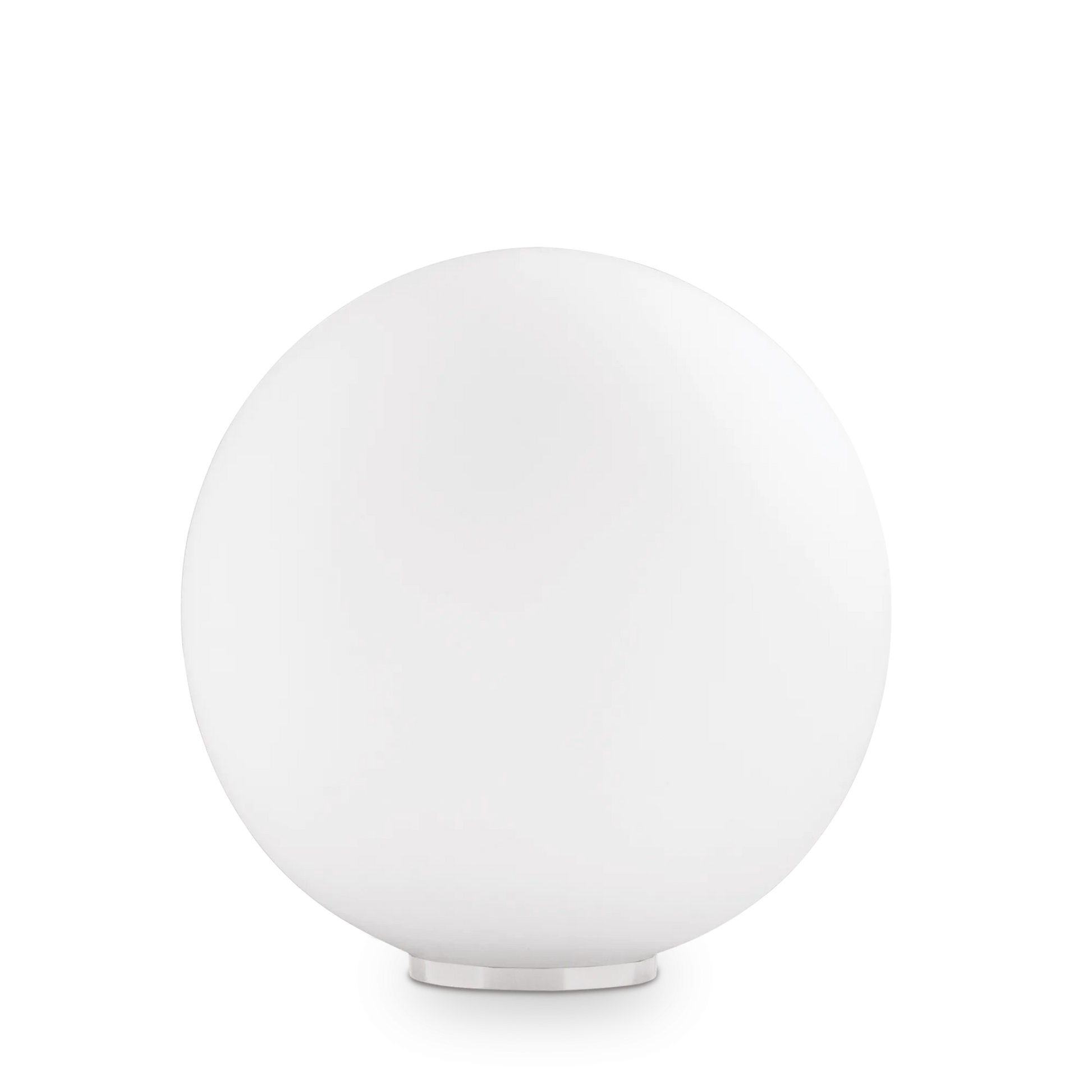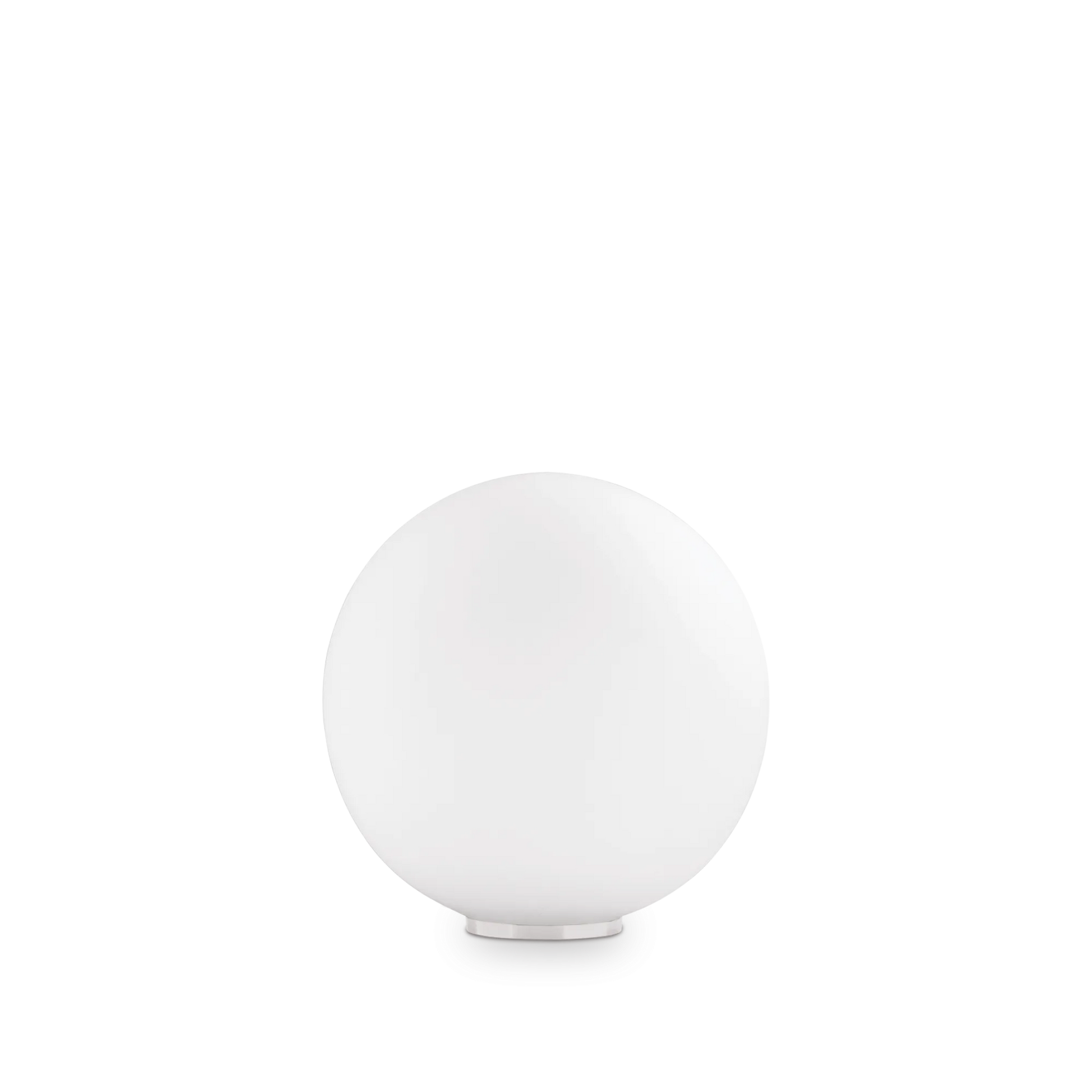 Base and fixing system in white metal. Sphere diffuser in blown and acid-etched white glass.