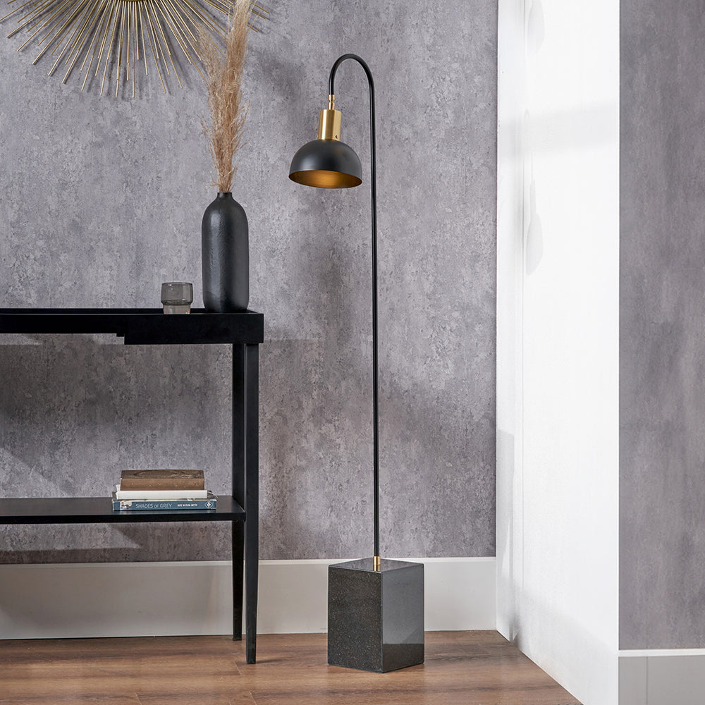 This stunning task floor lamp, finished in matt black metal, and brushed brass metal is the epitome of style. The sleek Mayfair floor lamp with a domed, moveable lampshade allows you to pinpoint the light source to where you need it the most. This stylish floor lamp, with a beautiful block of black marble for the base, will look fabulous in your living room, dining kitchen, or entrance hall, for extra light and style.