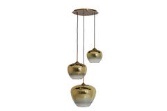 Enhance your living room or dining area with the Mayson hanging lamp set. Each Ø40cm glass lampshade with a golden finish features a vintage and elegant design, adding a warm touch to your interior. Perfect for above the dinner table, these lamps create a cozy and inviting ambiance. The set of three lamps enhances the overall aesthetic of your space.
