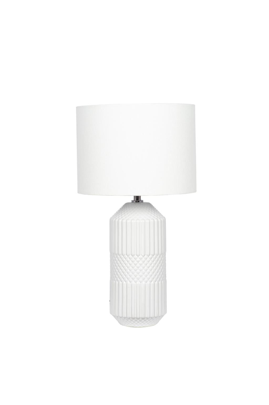 Meribel White Geo Textured Tall Ceramic Table Lamp