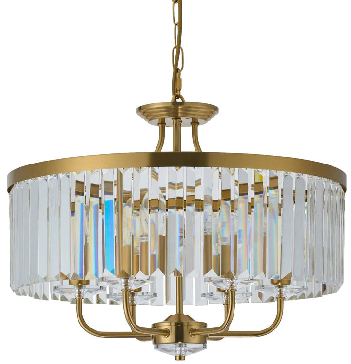 The Millie comes with the option for 3 or 6 lights and can be mounted as a hanging light or flush mounted. It features a stunning combination of brass and chrome and uses E14 bulbs. As an industry expert, you can trust in its versatile design and high-quality materials.