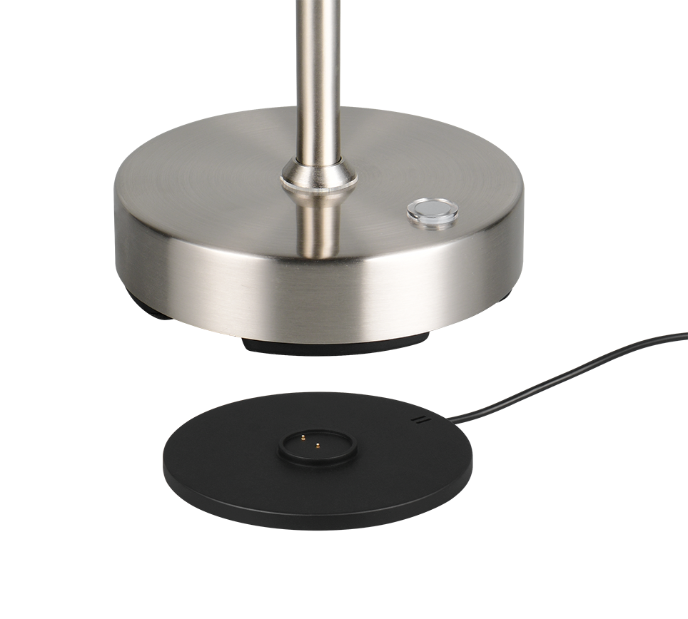 The MORENO rechargeable lamp embodies a harmonious synthesis of modern design and outstanding functionality. Designed as a table lamp, it offers maximum flexibility thanks to its powerful battery operation and an included charging station. The flexible arm of the luminaire allows the light to be effortlessly directed in any desired direction, whether for reading or working. In addition, both the light colour and brightness can be individually adjusted. This practical function makes the MORENO a versatile everyday companion. The choice of colours in matt nickel gives the luminaire a modern yet understated aesthetic that integrates seamlessly into a variety of furnishing styles. The luminaire also features modern LED technology, which is characterised by high light quality and energy efficiency. Compared to conventional halogen light sources, up to 80% of energy costs can be saved. LED light sources also have a long service life, produce less heat and protect the environment.