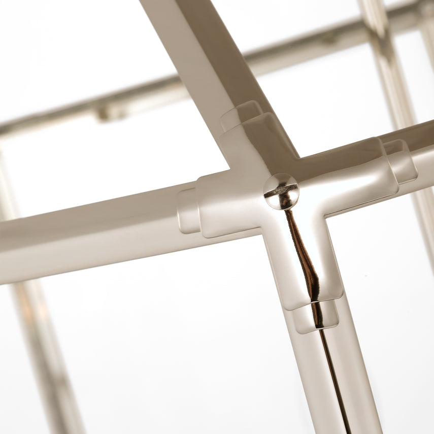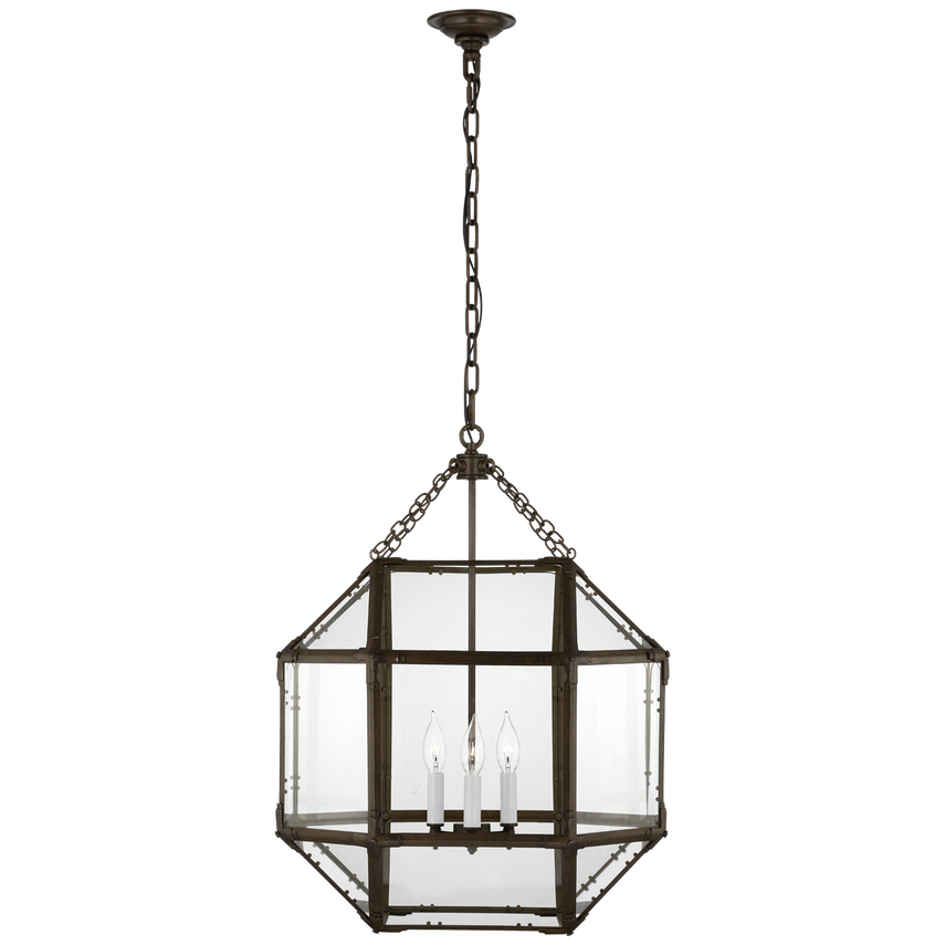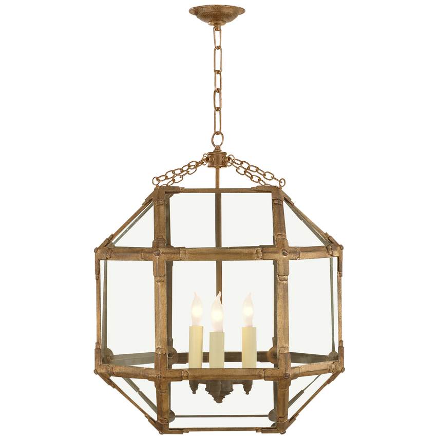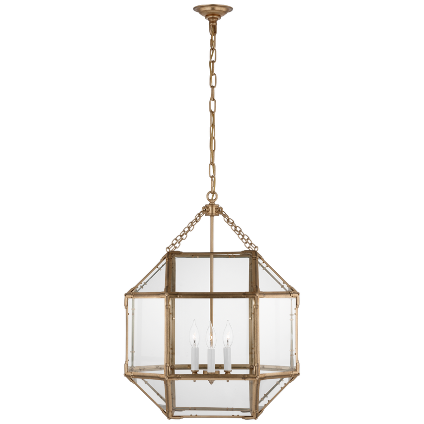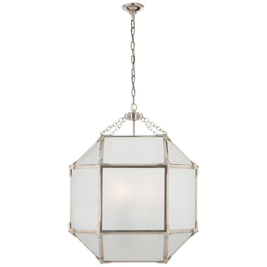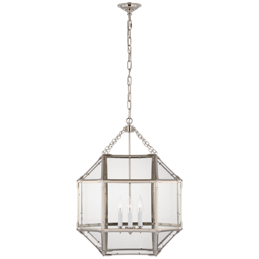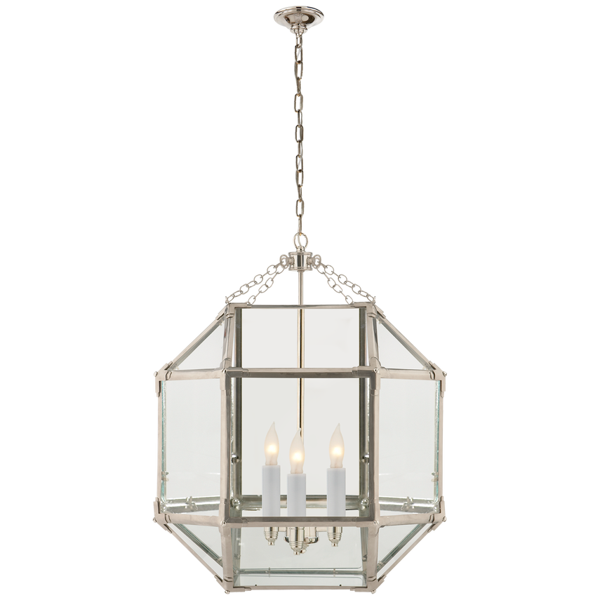 The Morris by Suzanne Kasler adds refined charm to any style of kitchen or entryway. Clear or white glass panes adorn the geometric frame in antique zinc, polished nickel or gilded iron, allowing for brighter or more diffused illumination.
