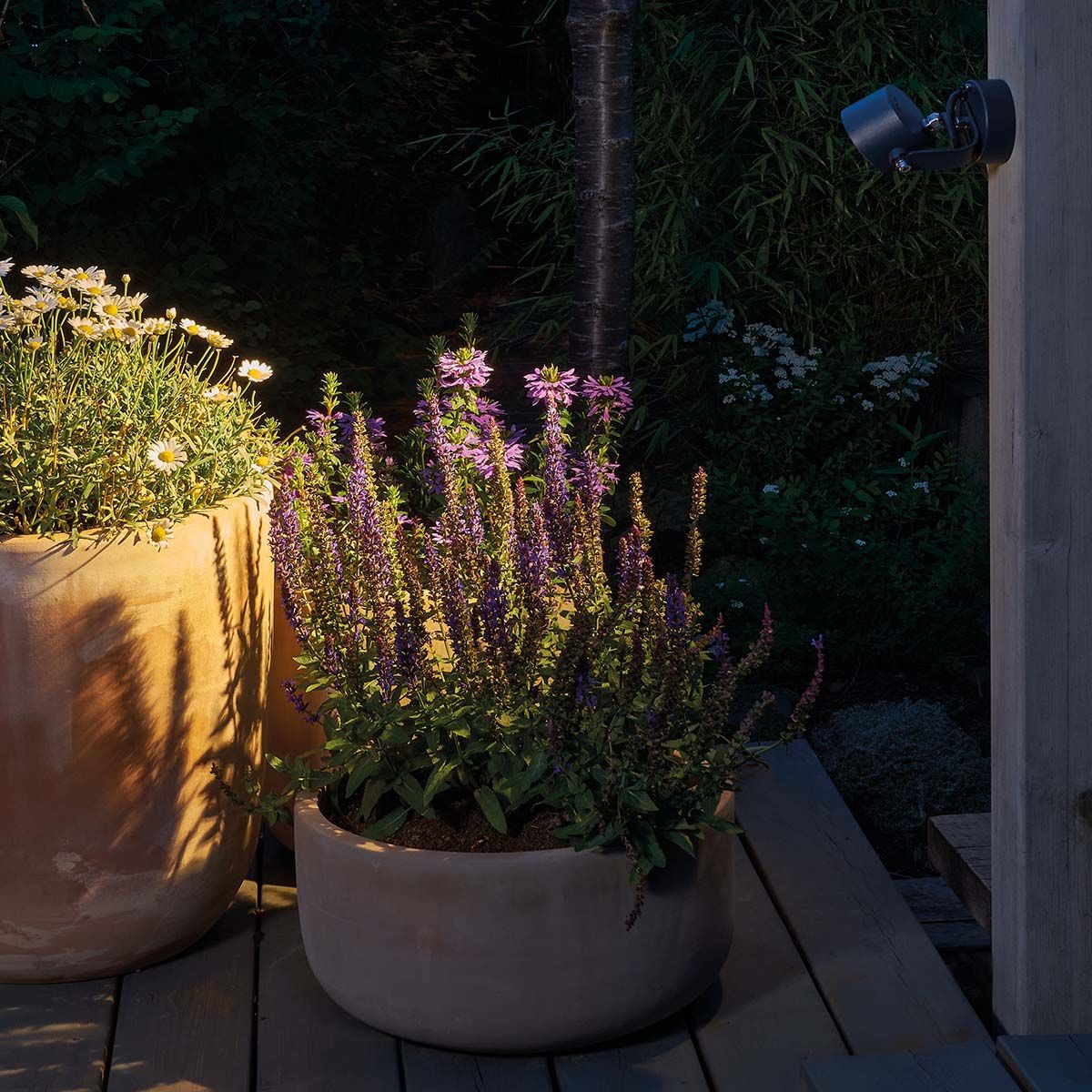 Moss spotlights combine a simple form with small dimensions. They are ideal for illuminating small architecture, individual trees or other elements of the garden layout important to the owner.