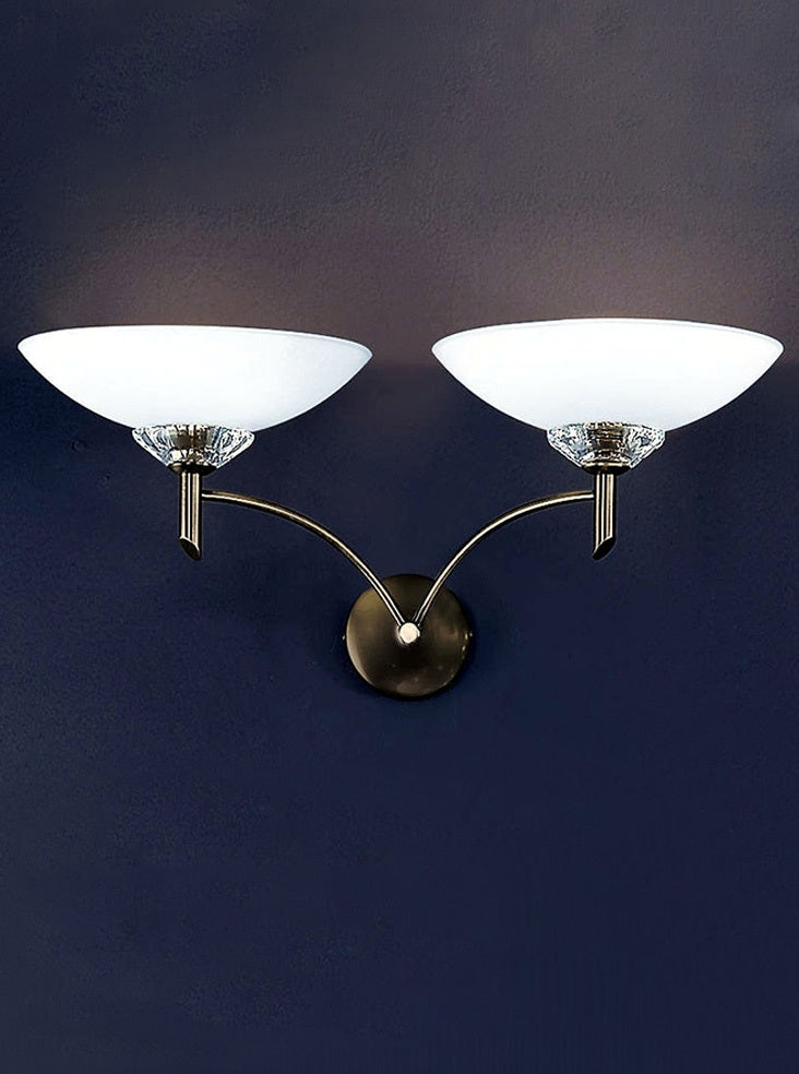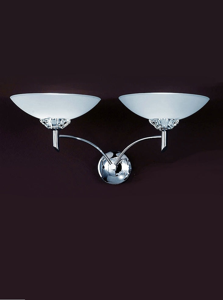 Chrome finish fittings with faceted glass sconces under a satin opal glass bowl. Supplied with 40W G9 halogen lamps which are suitable for dimming.