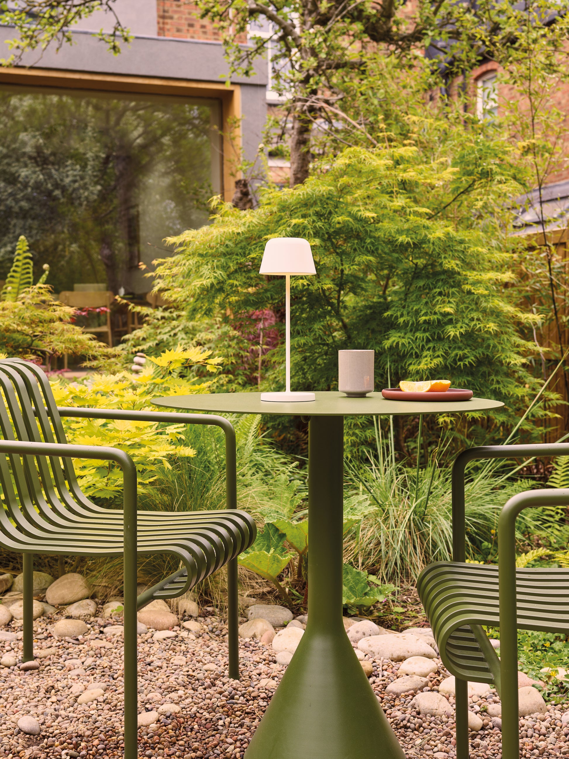 Nomad is a portable, rechargeable table light that offers bright, functional task lighting in any room of your home as well as outdoors. Its sleek appearance, dimming and water-resistant design make it the perfect addition to your dining room or garden table.