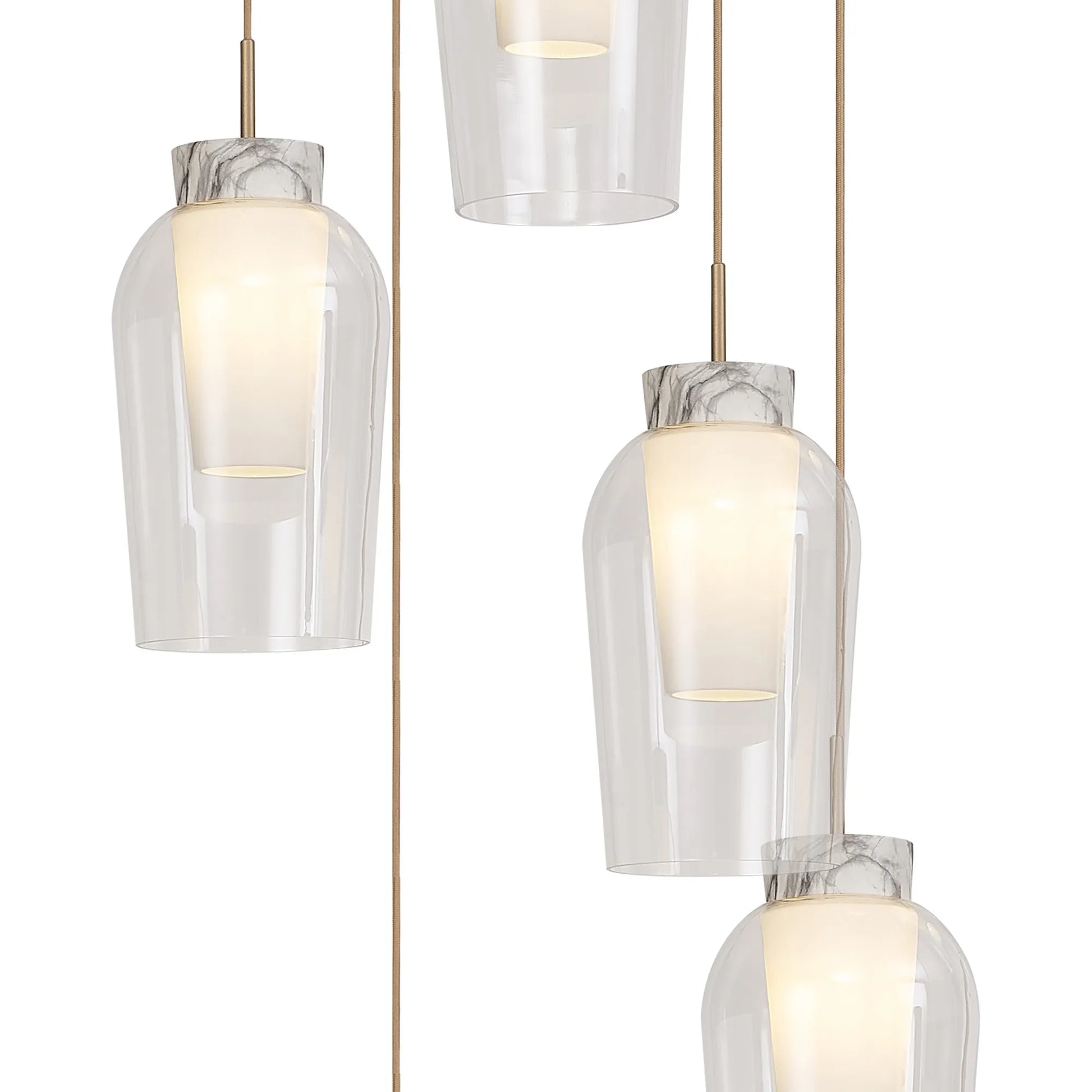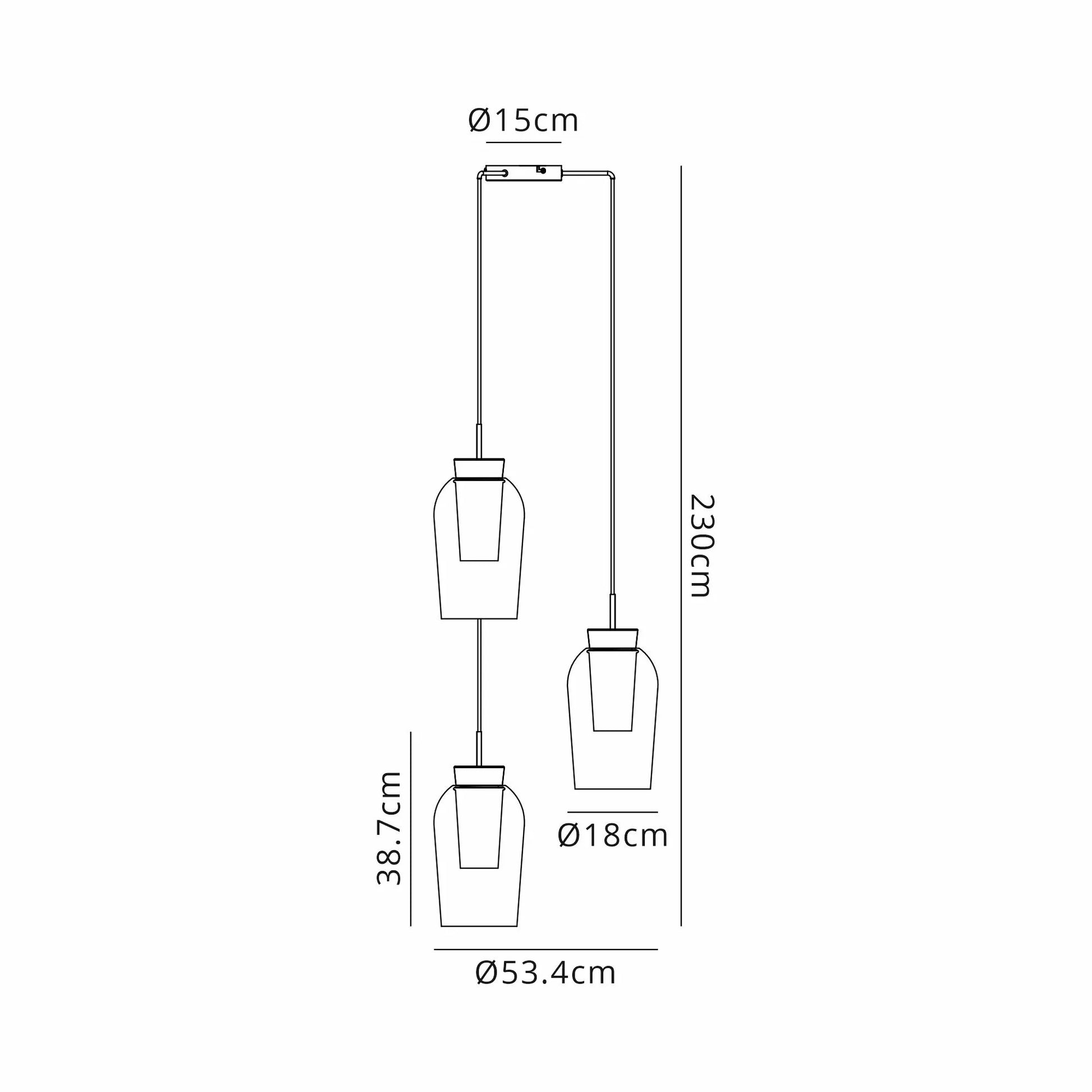 Brief Description: Nora Round Pendant 3 Light Adjustable E27 Black/Black Marble