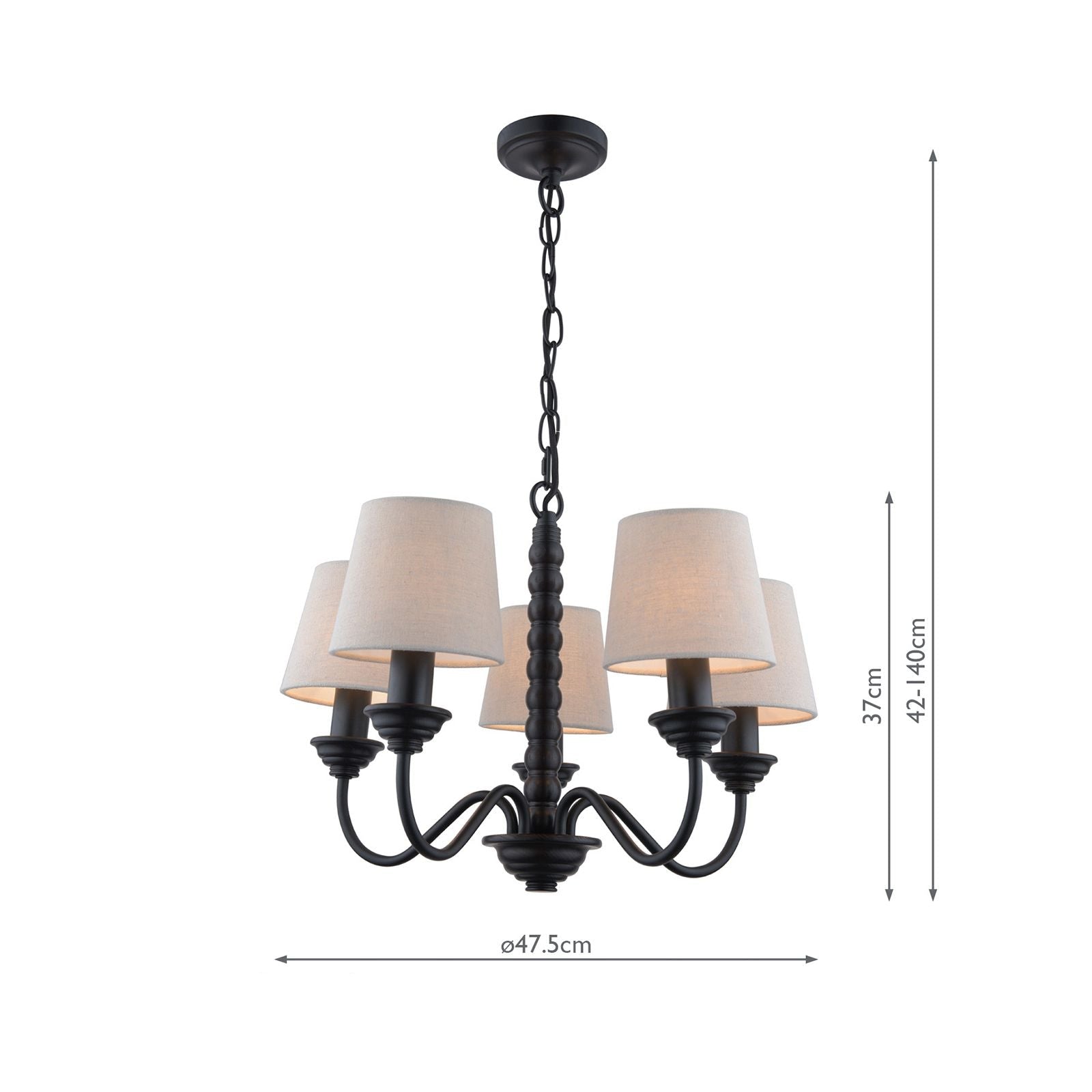 Norbury 5 Light Armed Pendant Matt Black With Shade