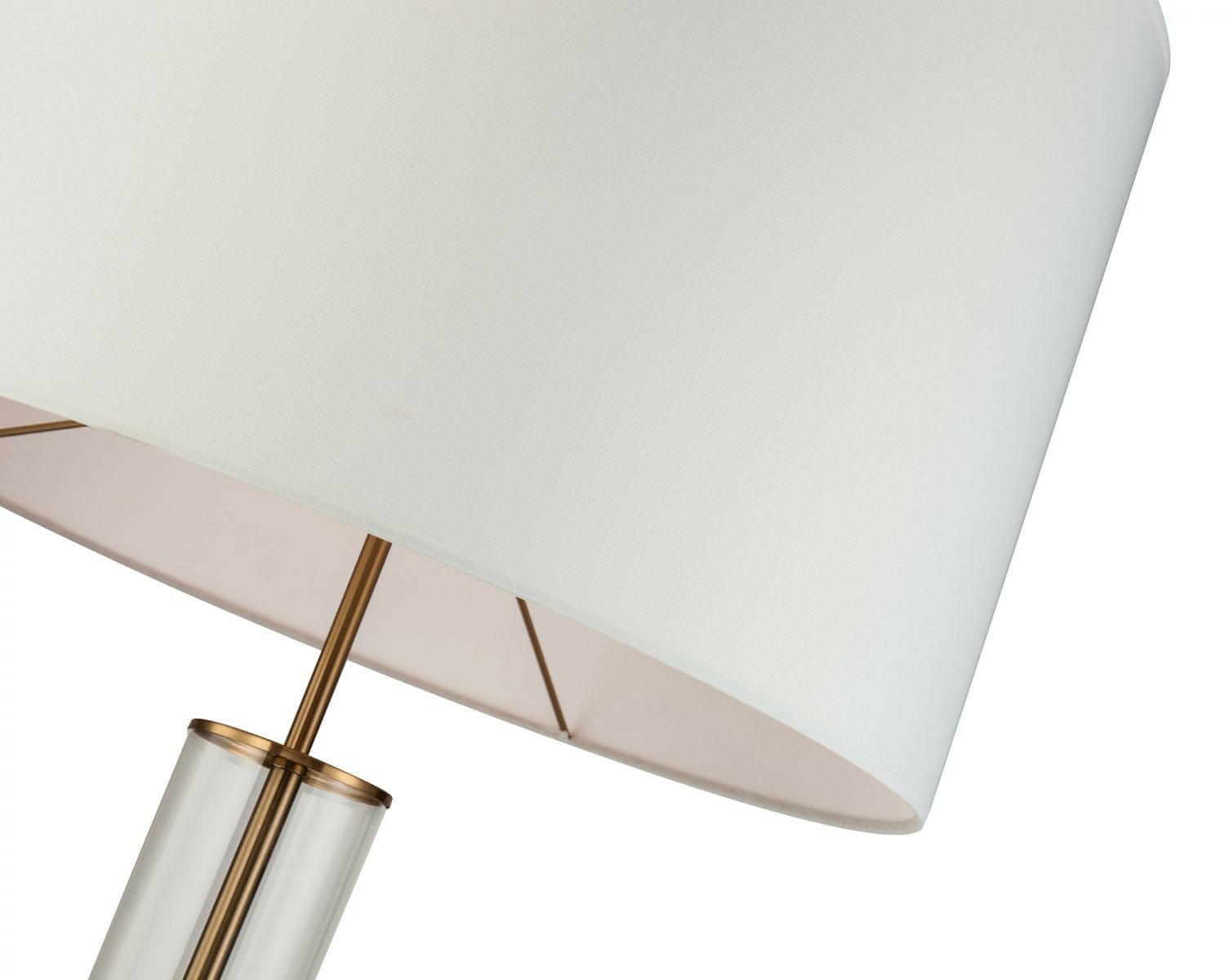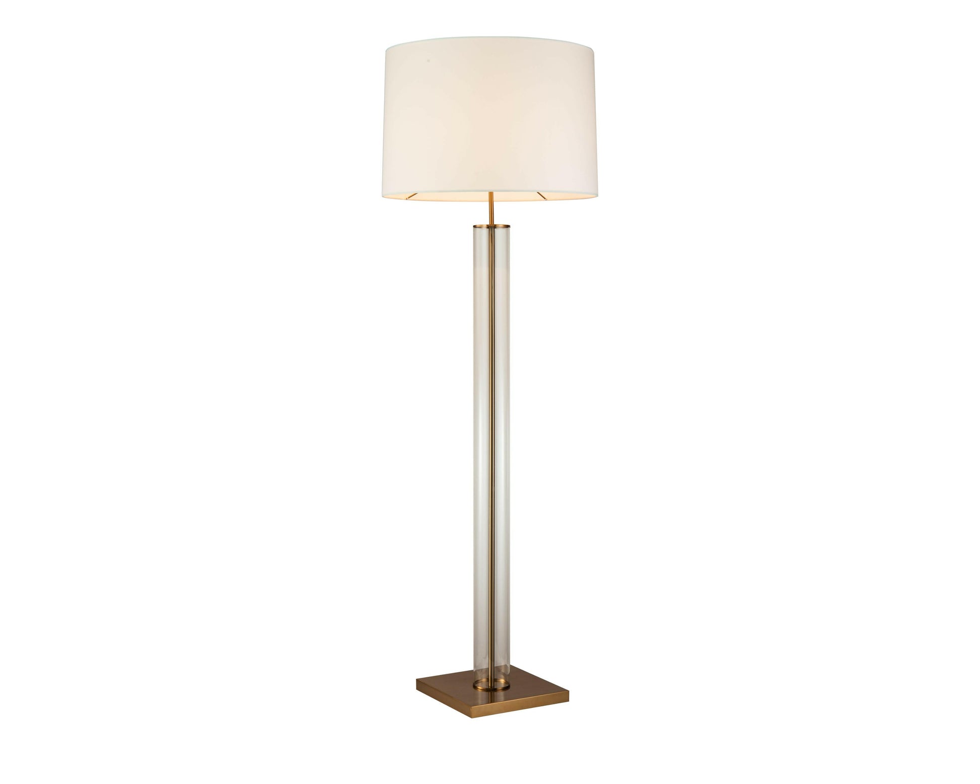Upgrade your space with Clear Glass, Antique Brass Finish, White Fabric Shade Sleek, stylish and modern, the Norman Floor Lamp is the perfect addition to any interior space – whether it be retro or contemporary.. This piece features a clear glass cylindrical column, and finished with an antique brass base and classic white shade, the Norman will accentuate any decor. (Light bulb is not included.. Requires 1 × E27 MAX 40W).