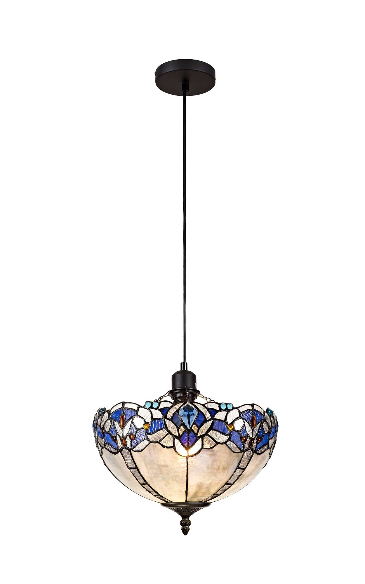 Oksana 1 Light Uplighter Pendant E27 With 30cm Tiffany Shade, Blue & Clear Crystal & Black