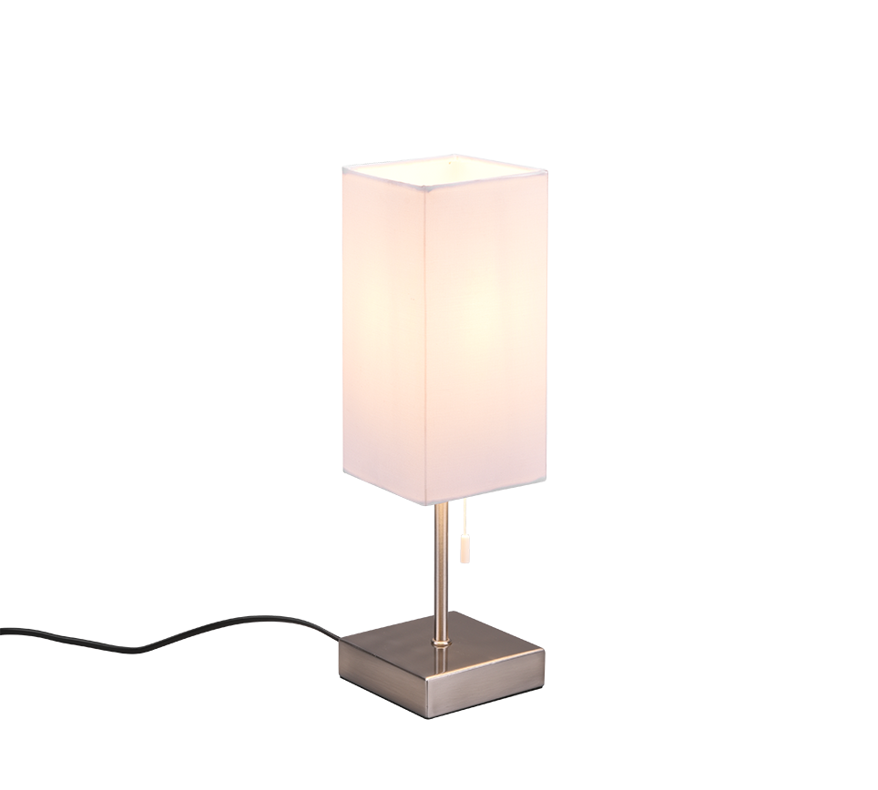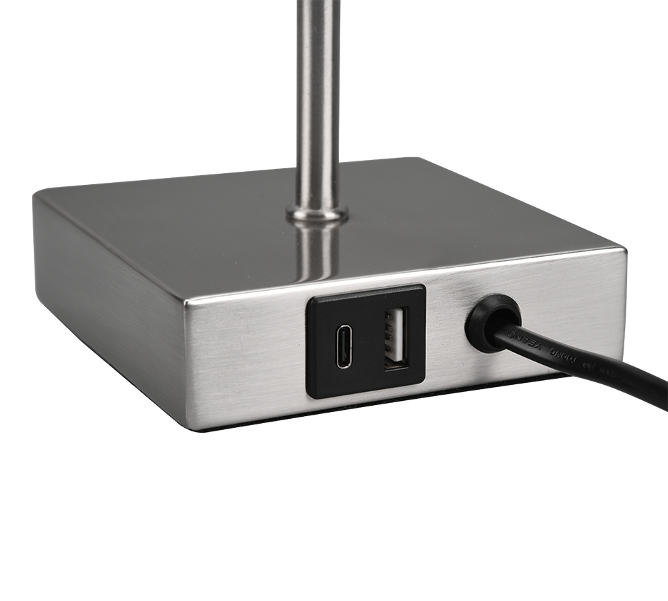 The OLE table lamp can do more than you might think. In addition to a timeless, minimalist design, the lamp has a USB-C and a USB port with charging function. Among other things, smartphones can be easily charged here with the help of a suitable cable. In addition, the luminaire has a pull switch, which allows the luminaire to be switched on and off quickly. The simple yet elegant design with nickel matt metal base and white fabric shade makes the lamp a practical eye-catcher in your living room. For energy-saving lighting, it is recommended to use an LED illuminant. These are an optimal alternative to conventional halogen lamps and stand for a high quality of light and energy savings of up to 80%. In addition, LED lamps help you benefit from a long service life, low heat generation and at the same time protect the environment.