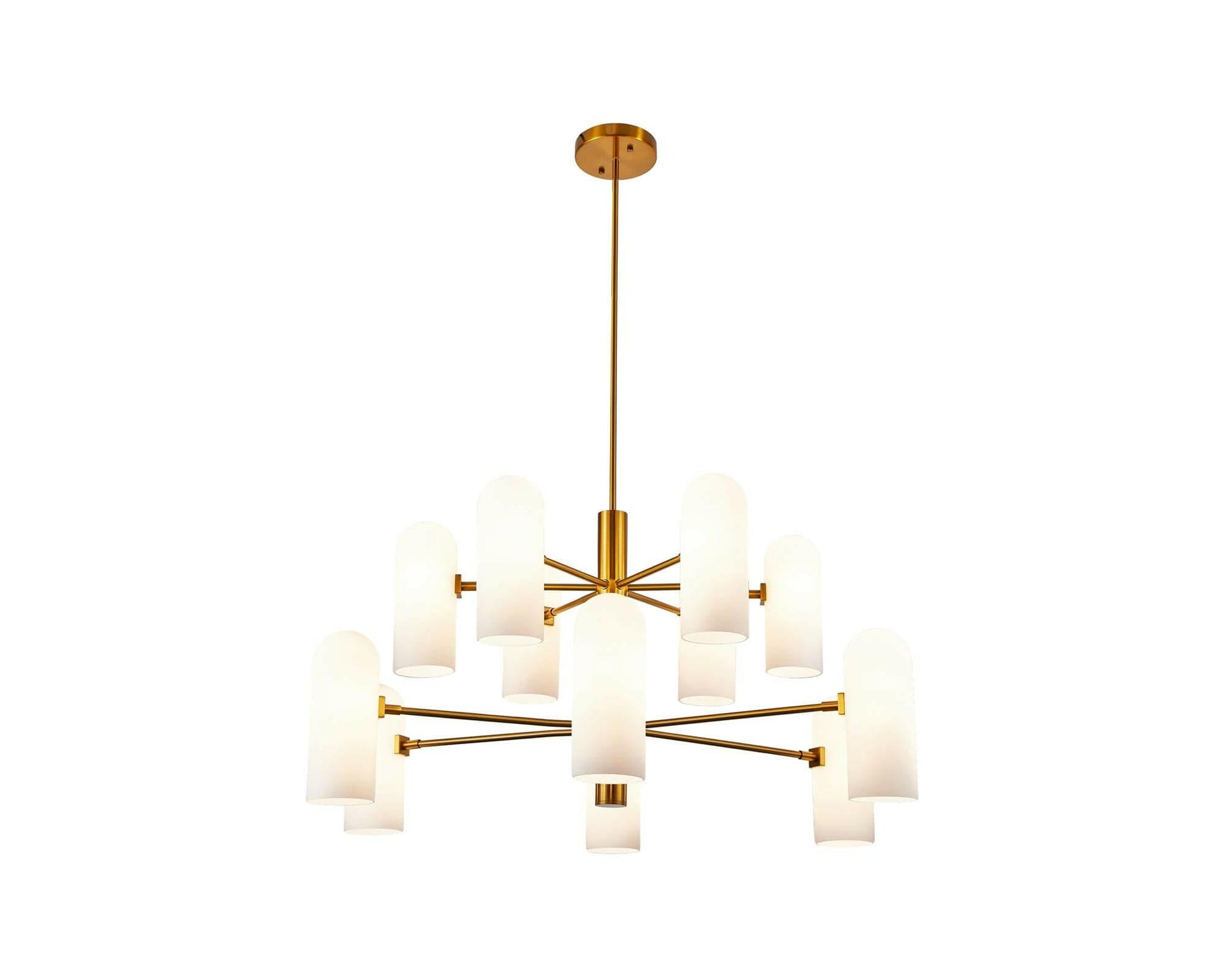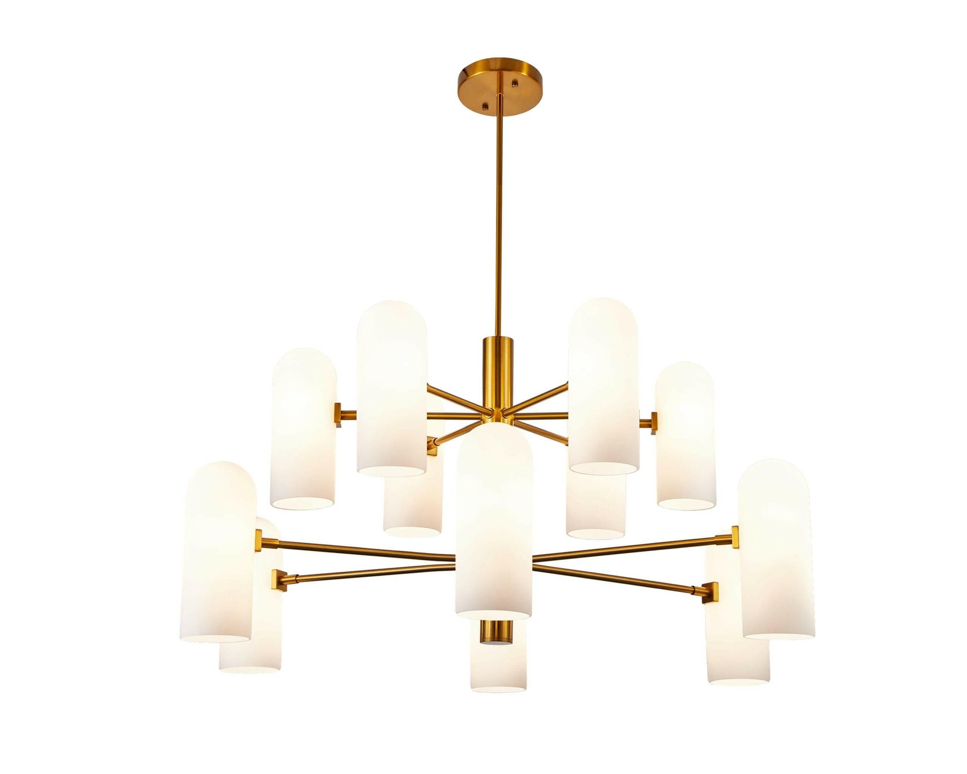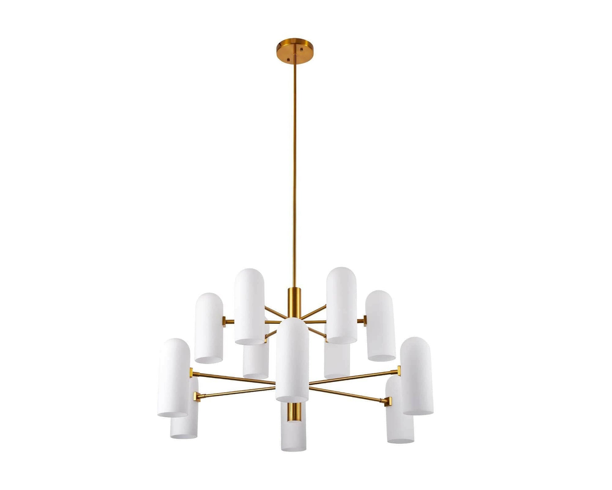 Enhance your interior with this The Pawson Chandelier is a daring blend of mid-century modern beauty and maximalist charm. This striking piece will look great in a living or dining room. It has a beautiful brass finish and 12 glass tubes. This piece takes on the shape of tradition, piece, complete with a hint of vintage charm. It has a striking design with smooth curves that contrast with the luminous colouration of the brass accents..