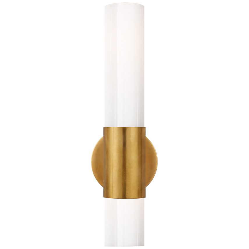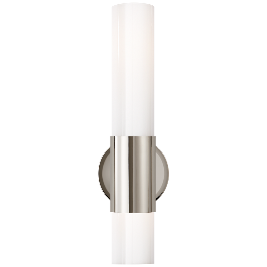 The Penz by AERIN exudes contemporary elegance in a streamlined design composed of an elongated cylindrical shade highlighted by an off-center metal band. The modern piece is an ideal light source for bathrooms and boudoirs alike.