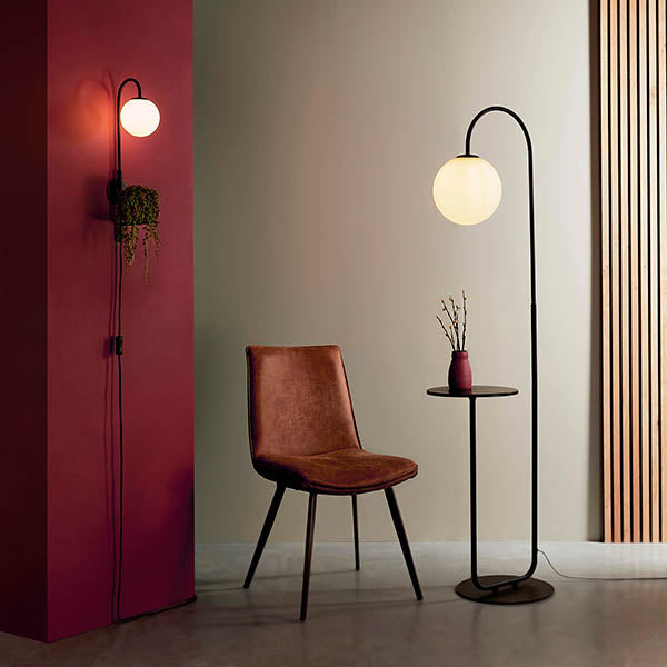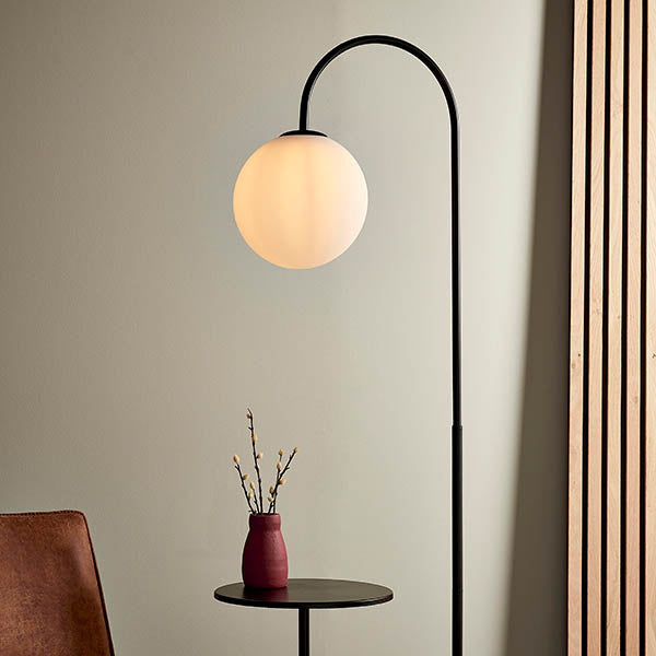 Polaris Floor Lamp With Table - Satin Black Finish E27