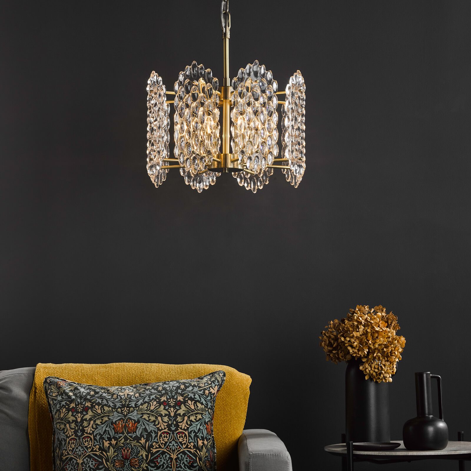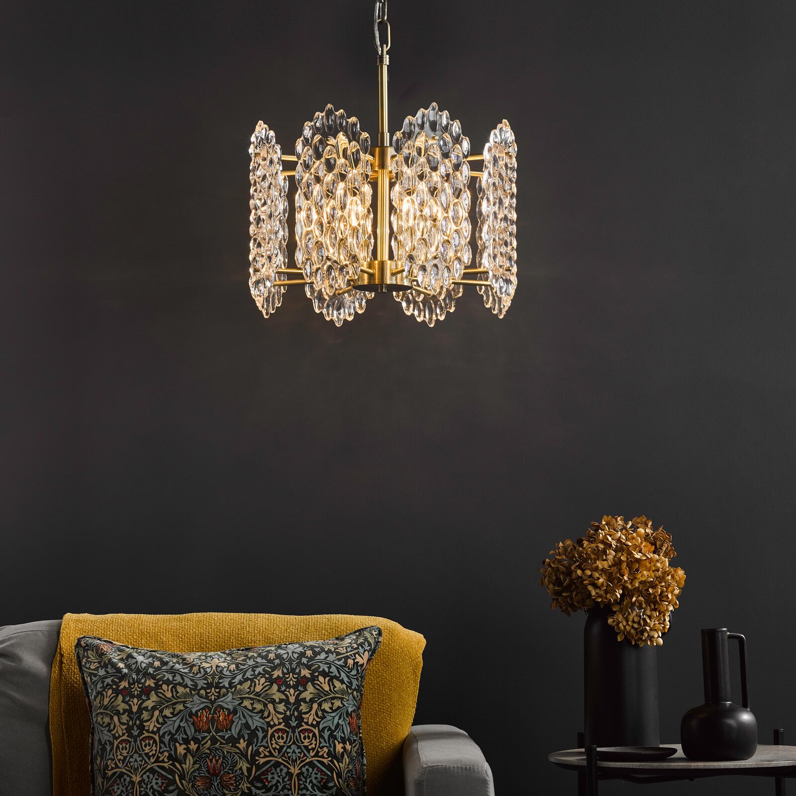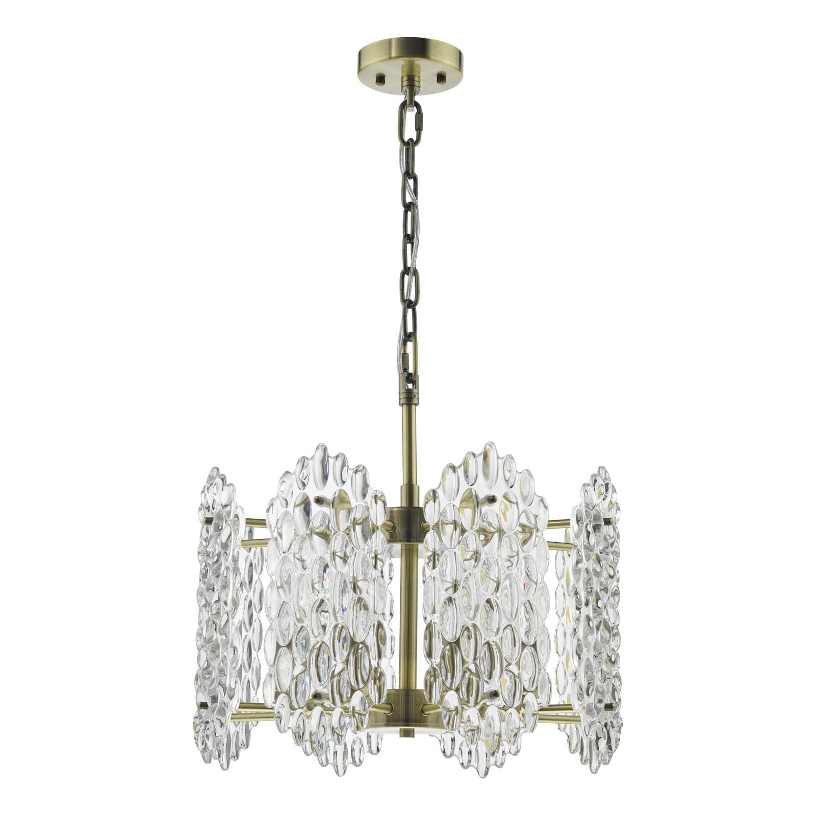 The Porthos 8 Light Pendant Antique Brass and Glass is a beautiful large yet shallow chandelier with a unique arrangement of textured glass with elongated lenses that gives a unique effect. The Porthos chandelier features a luxurious antique brass finish with a clear cable. The Porthos chandelier features a height adjustable frame allowing you to set it at the height you desire. The Porthos chandelier takes 8 E14 (SES) bulbs (not supplied).
