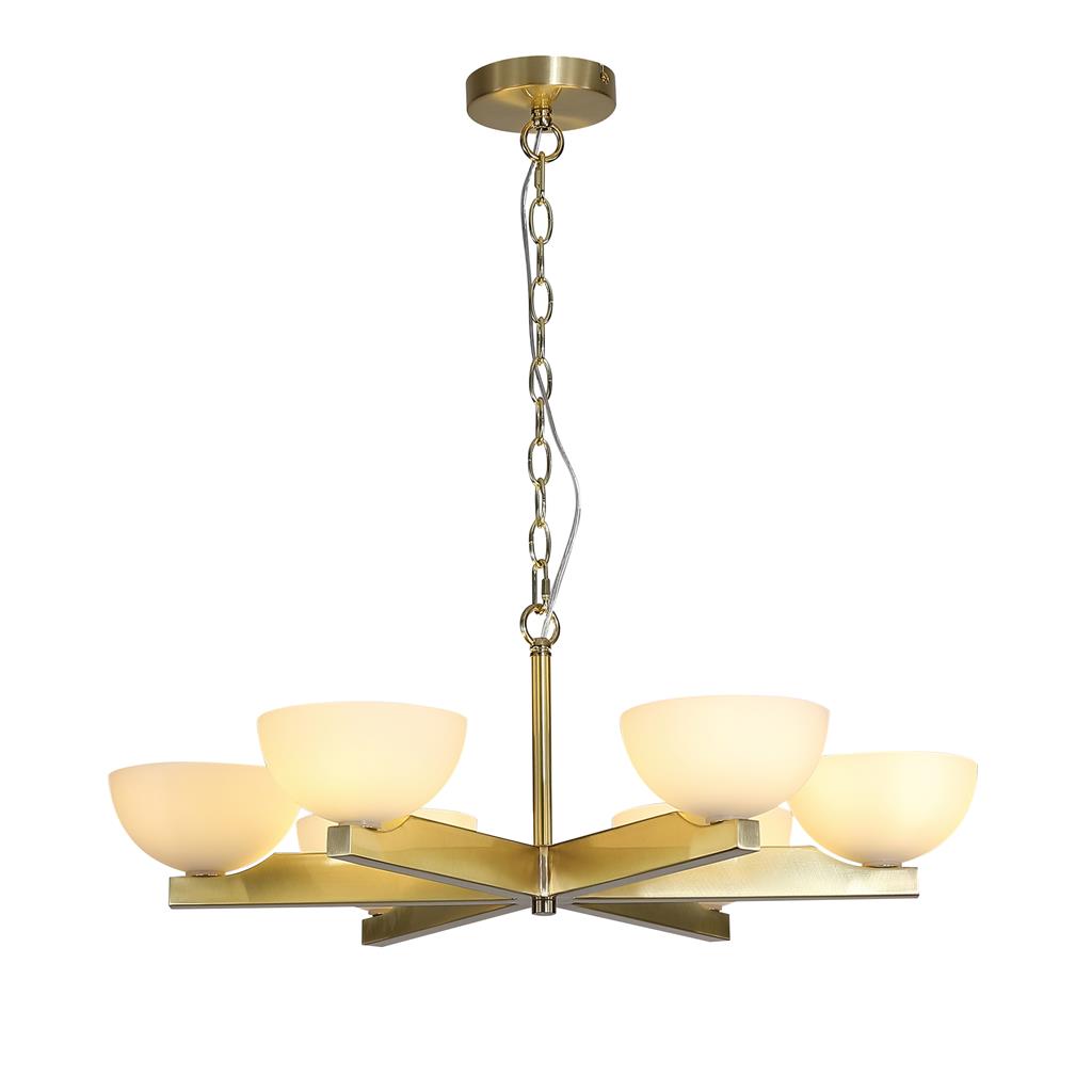 Infusing warmth into any room, 6LT Pendant in satin brass metal and opal white glass transforms any room. With durable metal and glass with a plated satin finish, it exudes luxury. The opal white shade casts a gentle light, creating a soft, inviting glow. With adjustable height for adaptability, it effortlessly suits various settings. Illuminate your home with the 6LT Pendant, perfect for dining areas, kitchens, or living rooms.