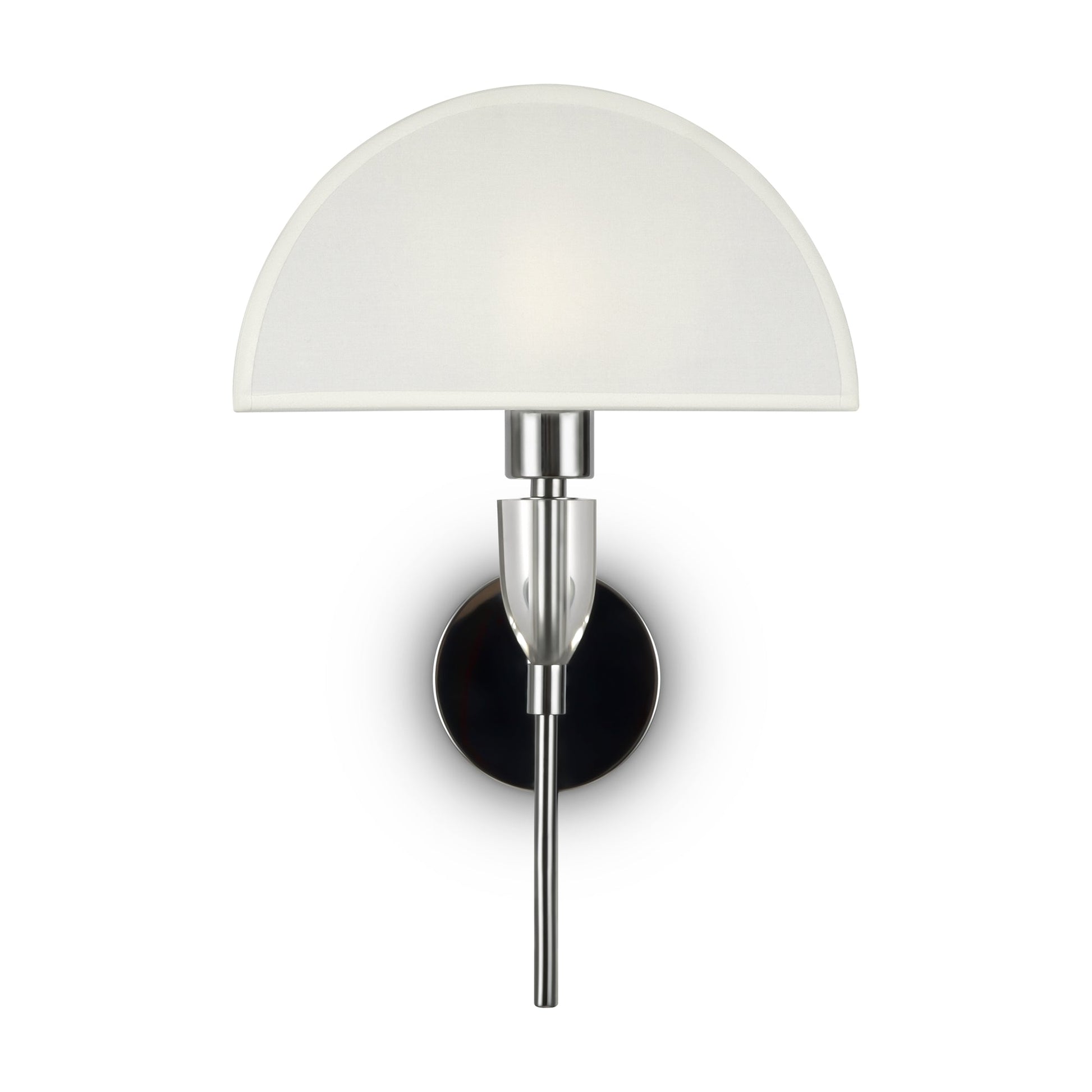 Fittings — metal. Shades — chrome. Cotton lampshade of white color. Transparent acrylic decorative elements at the base. Bauhaus aesthetics, lampshade trendy shape. Light source — lamp with E14 base.
