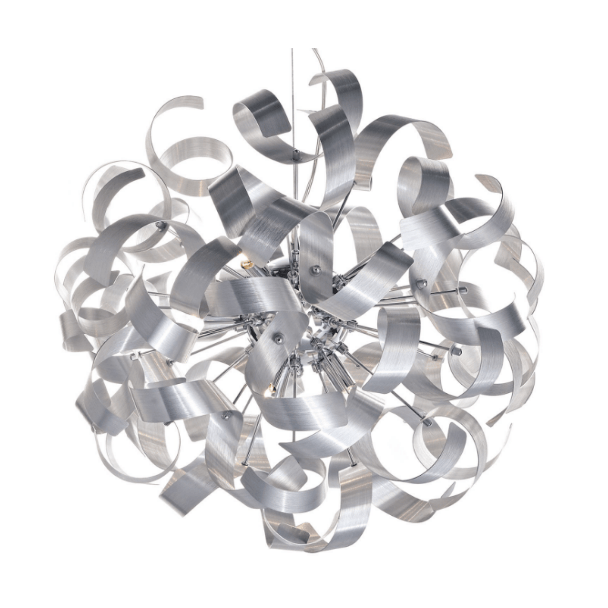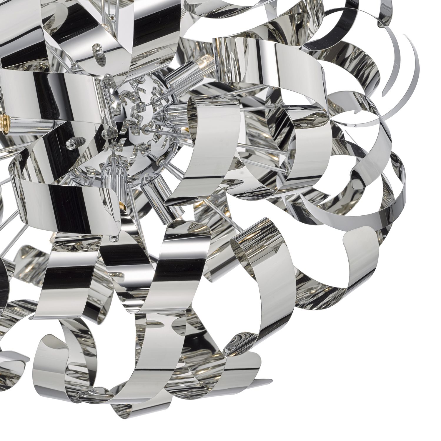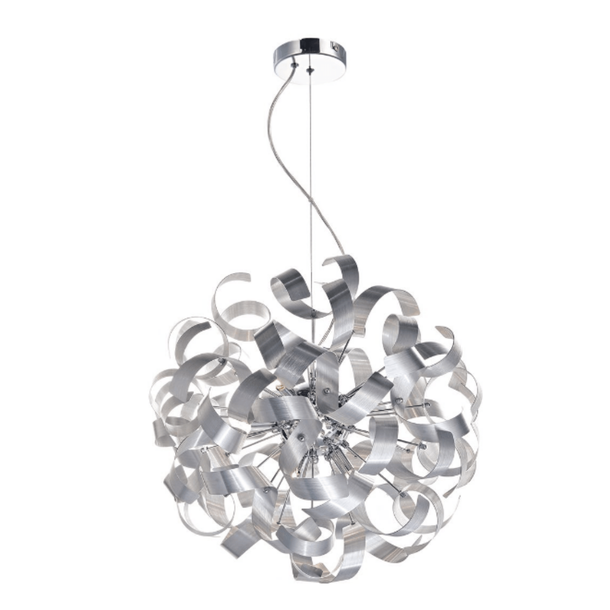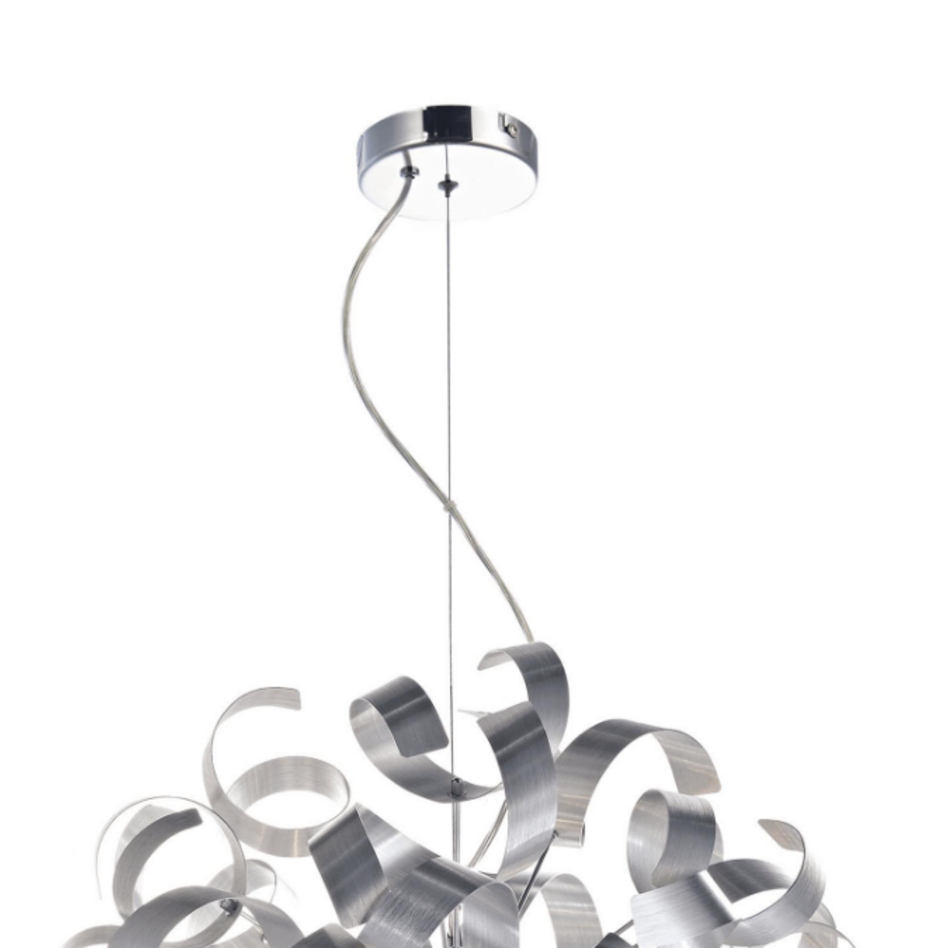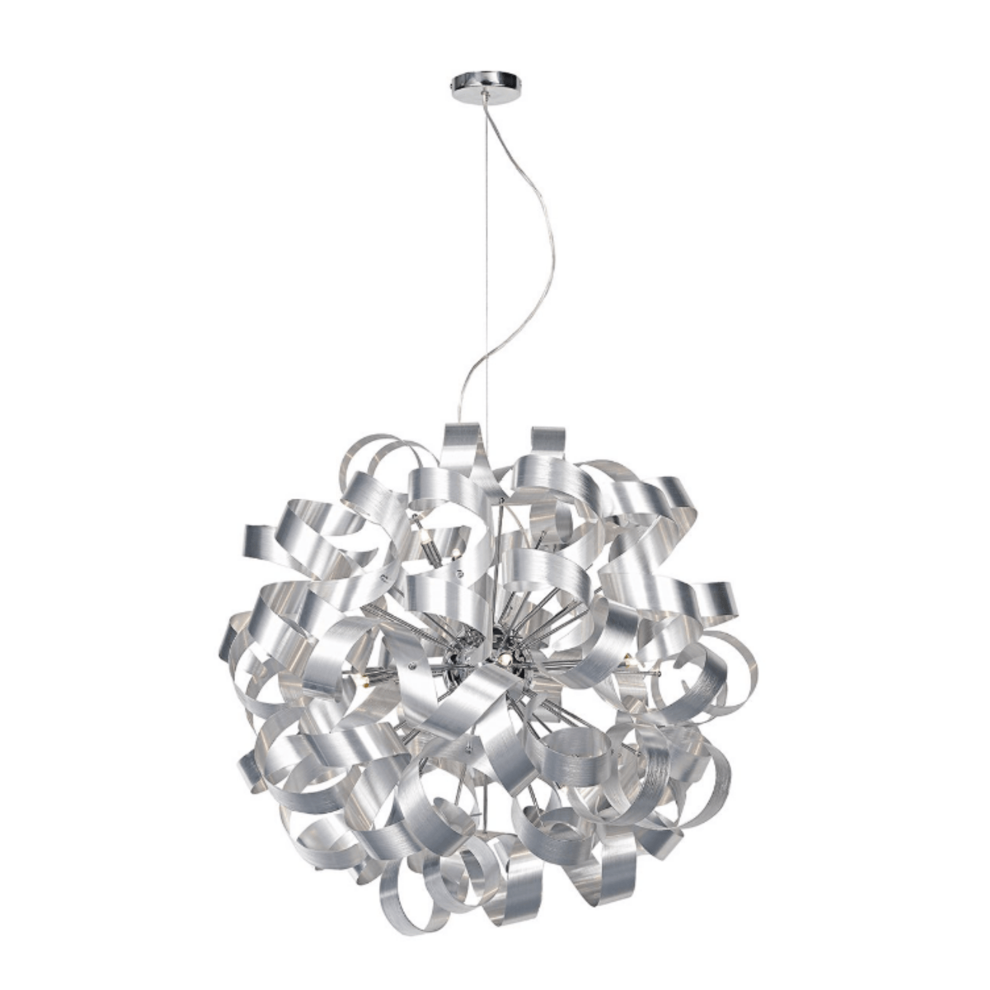 The Rawley 9 Light Pendant brings sculptural drama to your ceiling with swirling ribbons of metal in a striking polished chrome finish. Its sputnik-inspired design creates a captivating play of light and shadow, transforming any room into an artistic haven. The metallic tones add sophistication without overwhelming your décor. Perfect above dining tables or in entrance halls, this pendant effortlessly blends bold style with practical illumination.