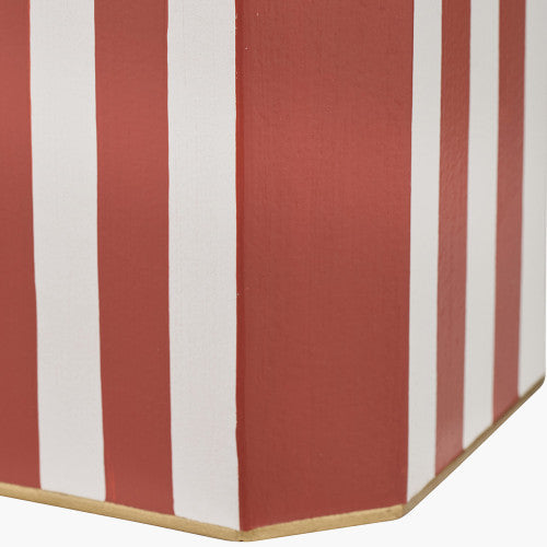 This stylish stripe design metal table lamp base in a contemporary white and cinnamon colour palette is sure to make a statement. The square-shaped base is the perfect vehicle to showcase the bold hand painted design, which is further accentuated with stunning gold accents. Crafted in India by artisans, this base will look fabulous with a range of lampshades, whether it be a tonal, white or cinnamon, or a contrasting black. Recommended lampshade size 40cms diameter.