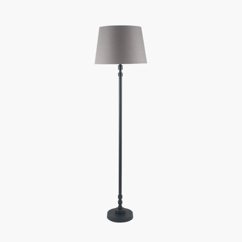 A simple yet elegant floor lamp base with a modern deep stepped foot finished here in a contemporary matt black. This floor lamp would look finished with one of our shades from our extensive range. Also available as a table lamp. Recommended lampshade size: 45cm diameter.
