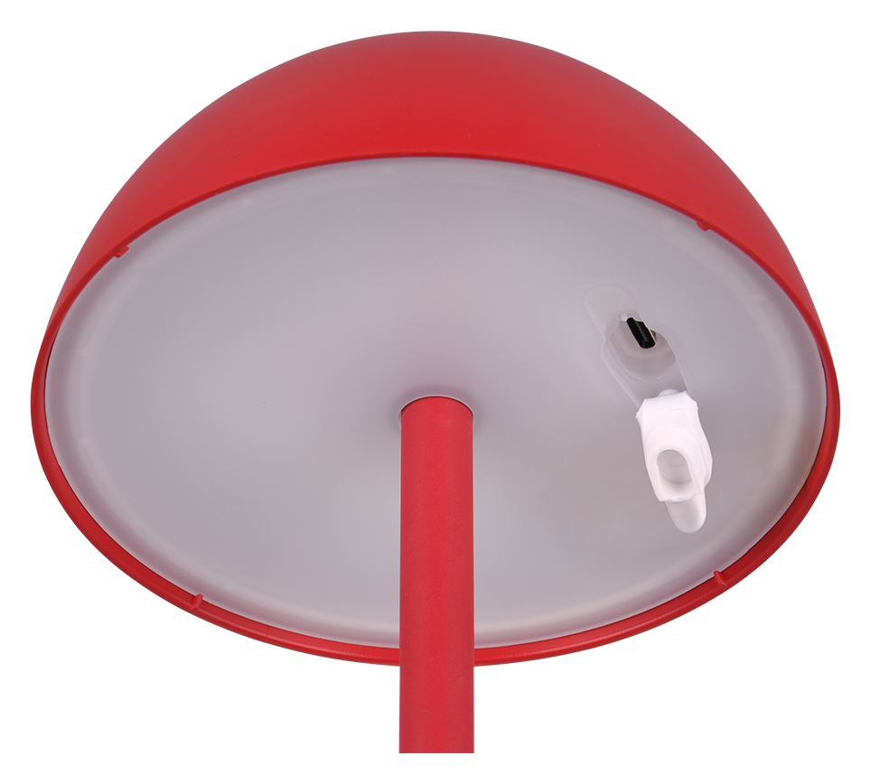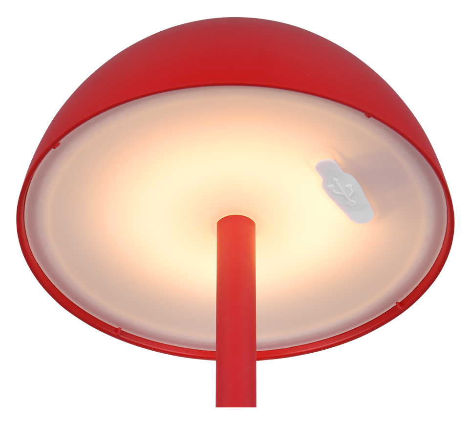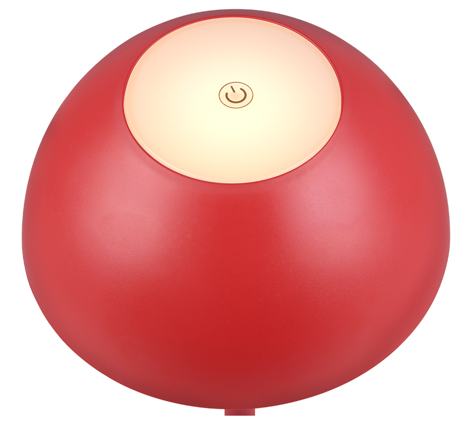 The RICARDO mobile LED rechargeable lamp combines design and functionality and is the ideal companion wherever light is needed. The downward and upward directed, glare-free light bathes any environment in a soft, atmospheric ambience. The integrated touch function can be used to adjust the light intensity in three brightness levels to suit the situation. Thanks to its IP54 protection rating, it is also suitable for outdoor use. Its minimalist mushroom design and vibrant red colour make the table lamp an eye-catching decorative element. The luminaire also features modern LED technology, which is characterised by high light quality and energy efficiency. Compared to conventional halogen light sources, up to 80% of energy costs can be saved. With LED light sources, you also benefit from a long service life and low heat generation while protecting the environment.