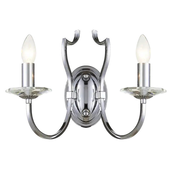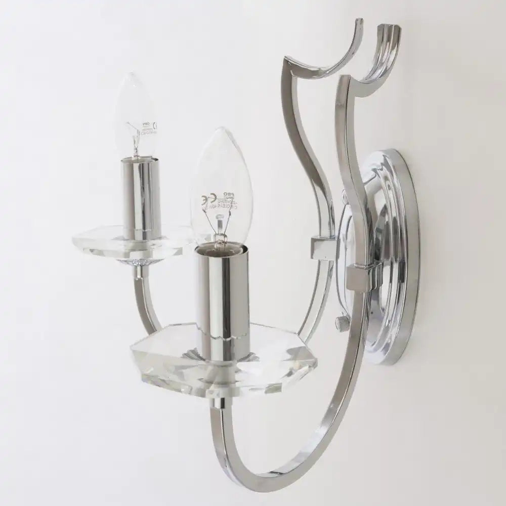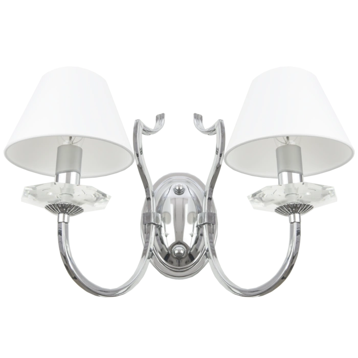 The RIGA series of lamps, with its arms, refers to the angular edges of the Moroccan clover - a symbol of New York style. The RIGA double wall lamp is covered with chrome, and its "candlesticks" are decorated with crystal glass. This is a unique proposition for those looking for classically beautiful products, without unnecessary ornaments.