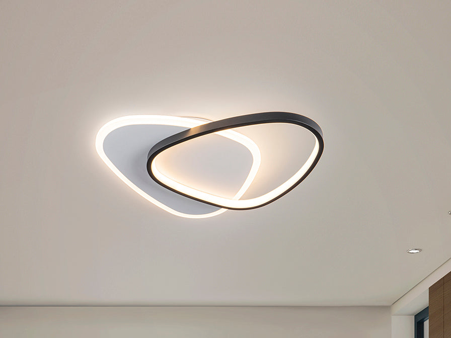 Ceiling light or wall lamp, made of metal finished in matt black and white. Opal acrylicc diffuser. 28W, 3024lm, 3,000K