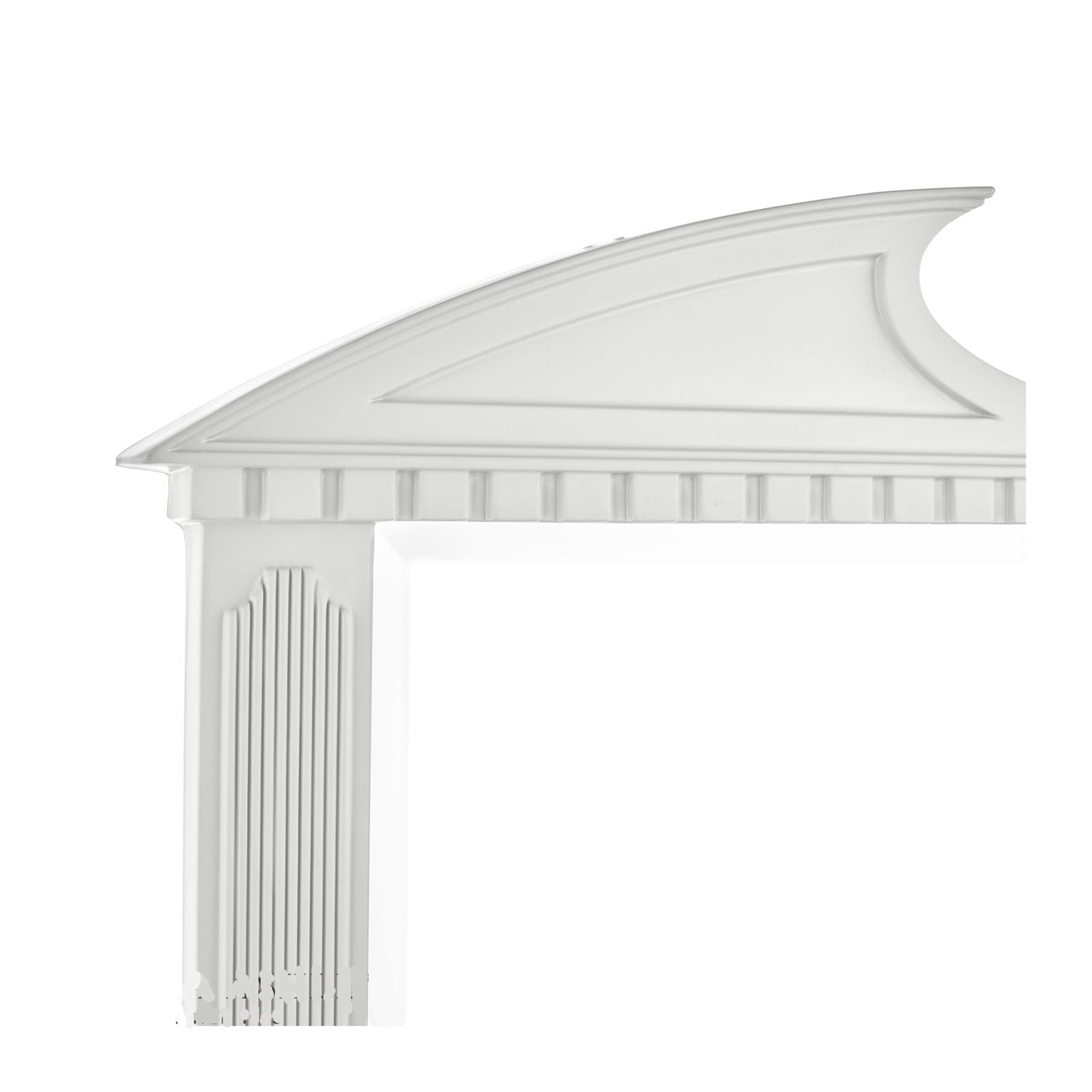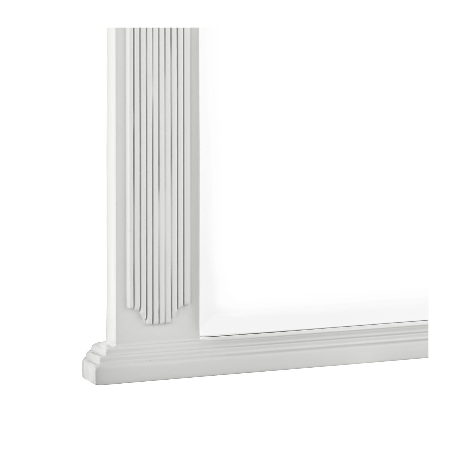 Finished in a sophisticated satin Hanover Grey the Rossett overmantel mirror is an elegant reincarnation of the neoclassical style featuring a striking, cut-out embellishment. The bevelled mirror is flanked by side columns with a subtly ribbed texture detail, with dentil detailing to the top and a stepped plinth. Ideal on or above a mantelpiece, it can also make a bold statement on a chest of drawers, console table or buffet in the living room or dining room, as well as in the bedroom, dressing room, study or hall.