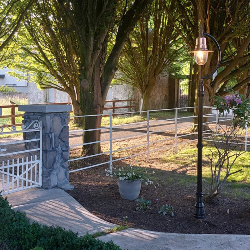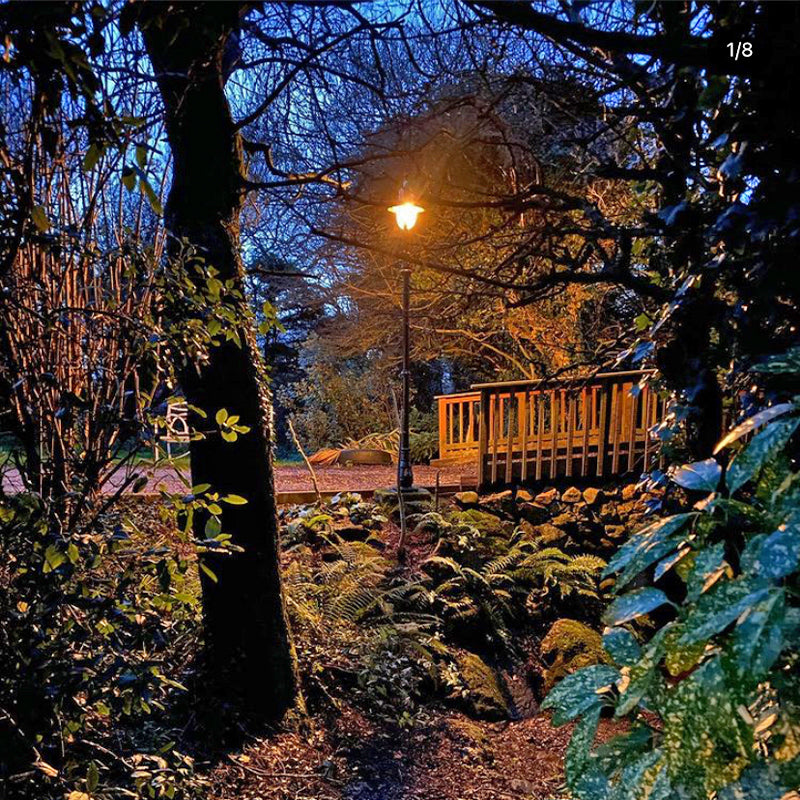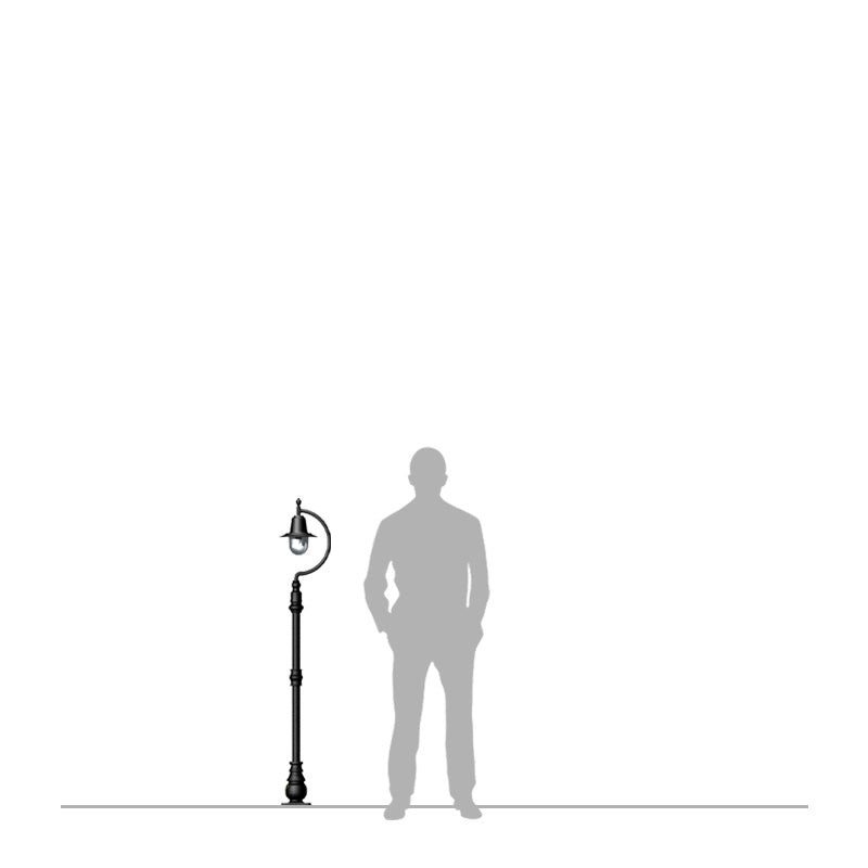 Vintage tear drop lamp post in cast iron and steel 1. 5m in height The Goose Neck range as the name suggests is based on the organic curve from the old farmyard Goose neck. The vintage design of the range is really flexible to a wide range of customer needs from placing along winding driveways to highlighting a corner of the garden. This Goose Neck range is also available with hand spun copper heads too.