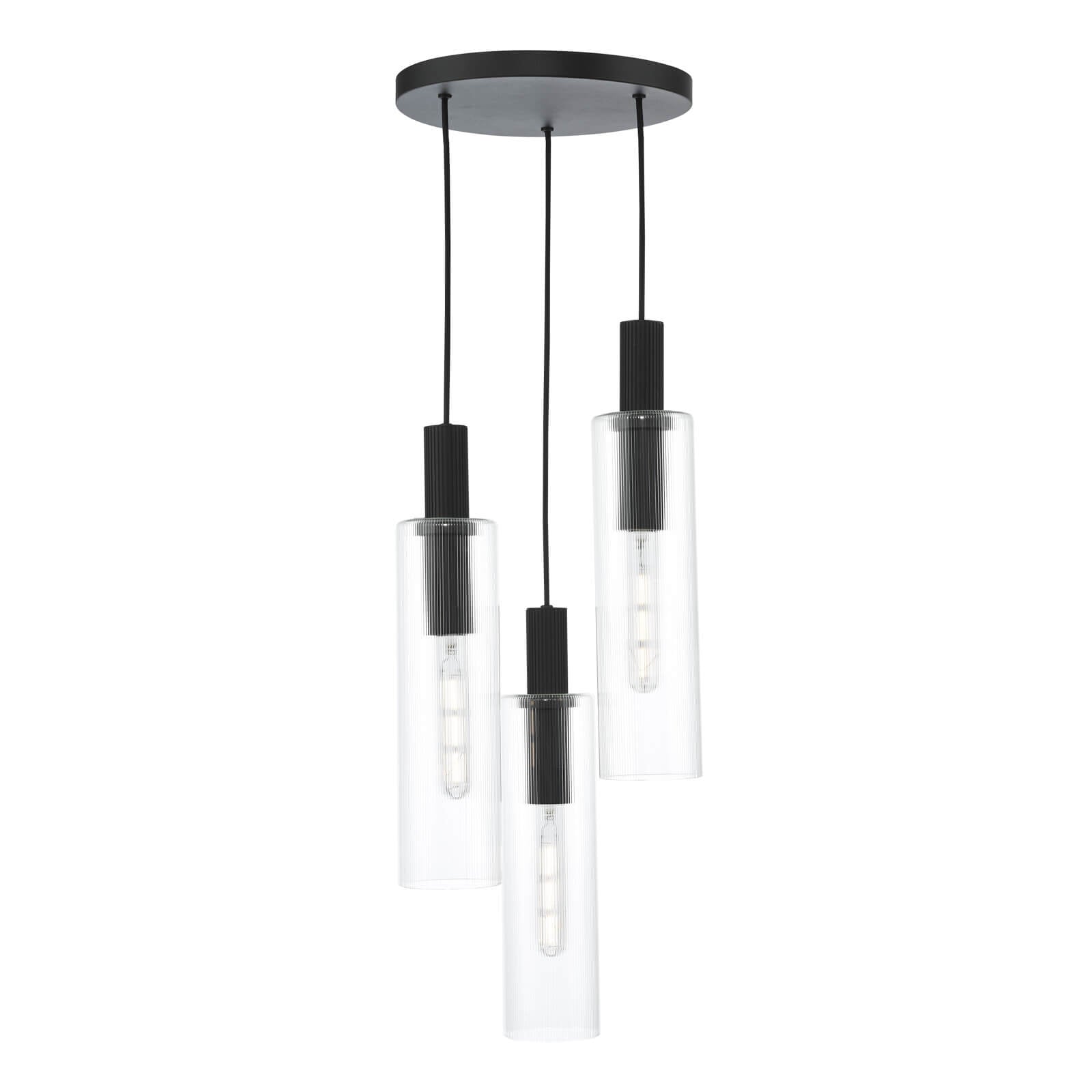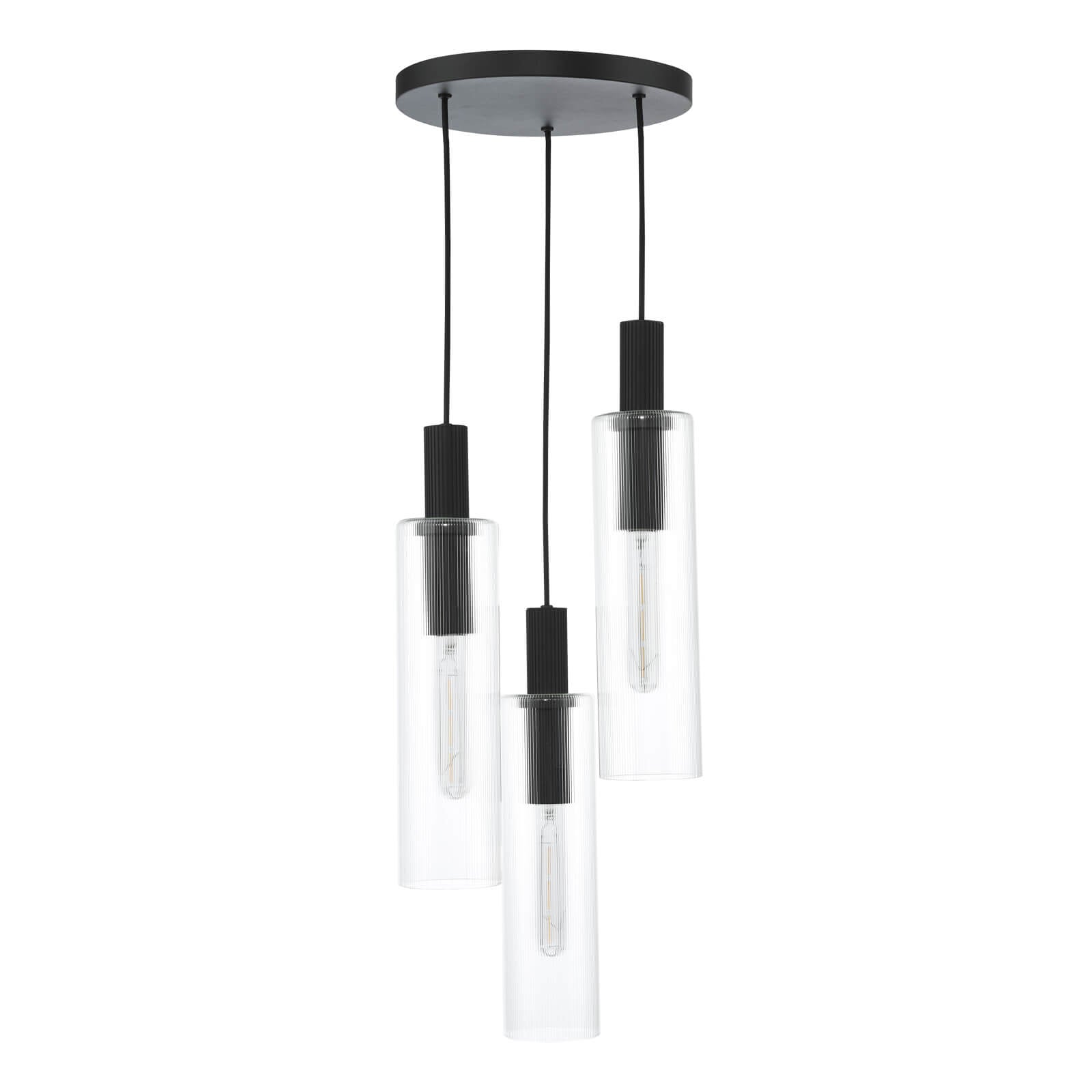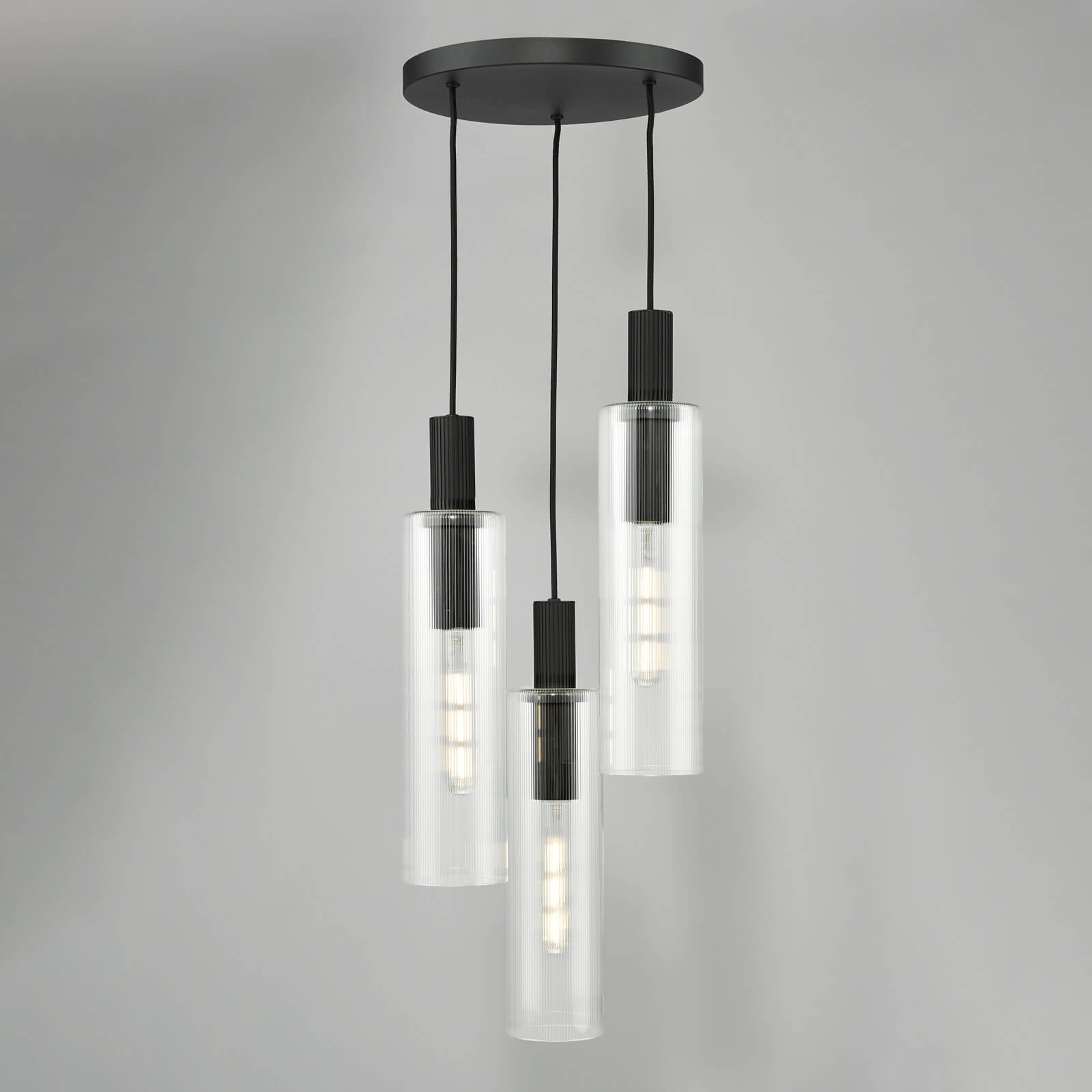 Elevate your space with the Ruben 3 Light Cluster Pendant, a sleek and stylish lighting fixture designed to make a bold statement. Finished in satin black, this pendant showcases elegant ribbed glass shades that can be easily adjusted to any height along the frame, introducing a modern touch to your decor. Perfectly suited for illuminating larger areas, such as stairwells, dining rooms, or kitchen islands, the Ruben 3 Light Cluster Pendant not only provides ample lighting but also adds a sophisticated flair to your home.Height is adjustable at the point of installation (48-150cm).Bulb not included; takes 3 x 40W max ES Tube. We recommend our BUL-E27-LED-25 bulb. Click here to shop.Dimmable when paired with suitable bulbs.