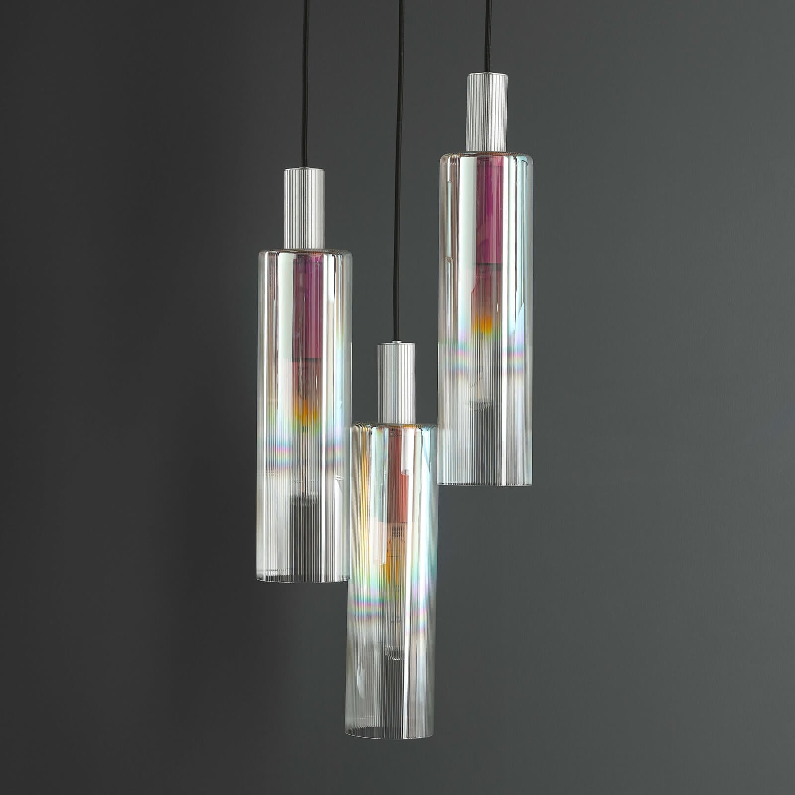 Ruben 3 Light Cluster Pendant Satin Silver and Ribbed Iridised Glass/Satin Black & Ribbed Glass E27