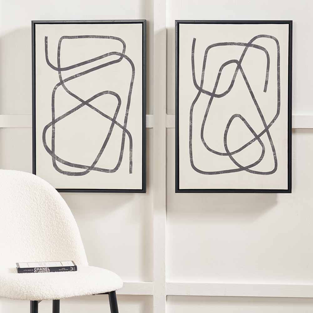 The set of 2 abstract canvasses are simple, but incredibly effective, offering style and design to a plain wall. The monochrome wall art, accuentuated with a black recycled poly frame, ensure these pieces will slot easily into any interior decor. The stylish canvases can be used together or as singles, wherever you decide to place these canvasses they are sure to make a statement.