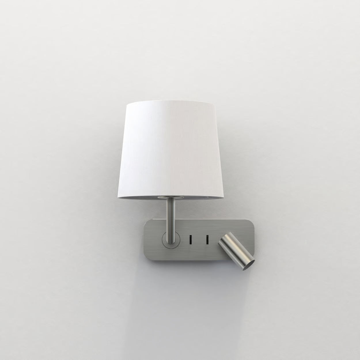 Side by Side is a decorative combination reading light, providing both ambient and task lighting. Each light source is operated by a separate switch.