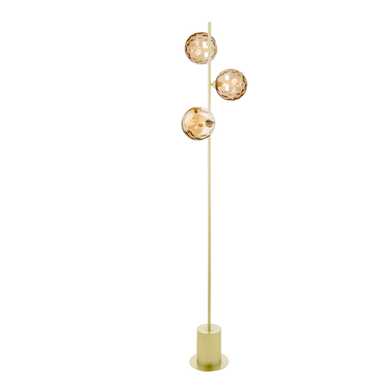 Introducing the Spiral 3 Light Floor Lamp – a stunning fusion of form and function. This lamp marries our signature champagne dimpled glass with a sleek matt gold frame. The result is a contemporary lighting masterpiece that effortlessly captures attention while maintaining an understated charm.Crafted to elevate your space, the Spiral 3 light floor lamp includes a foot switch for convenient on/off control. Its design emphasizes both aesthetic appeal and user-friendly functionality.Illuminate your surroundings with the Spiral 3 light floor lamp, which accommodates three G9 bulbs (bulbs not supplied). Opt for LED bulbs from our LED bulb range to combine elegance with energy efficiency.Embrace the allure of contemporary design.