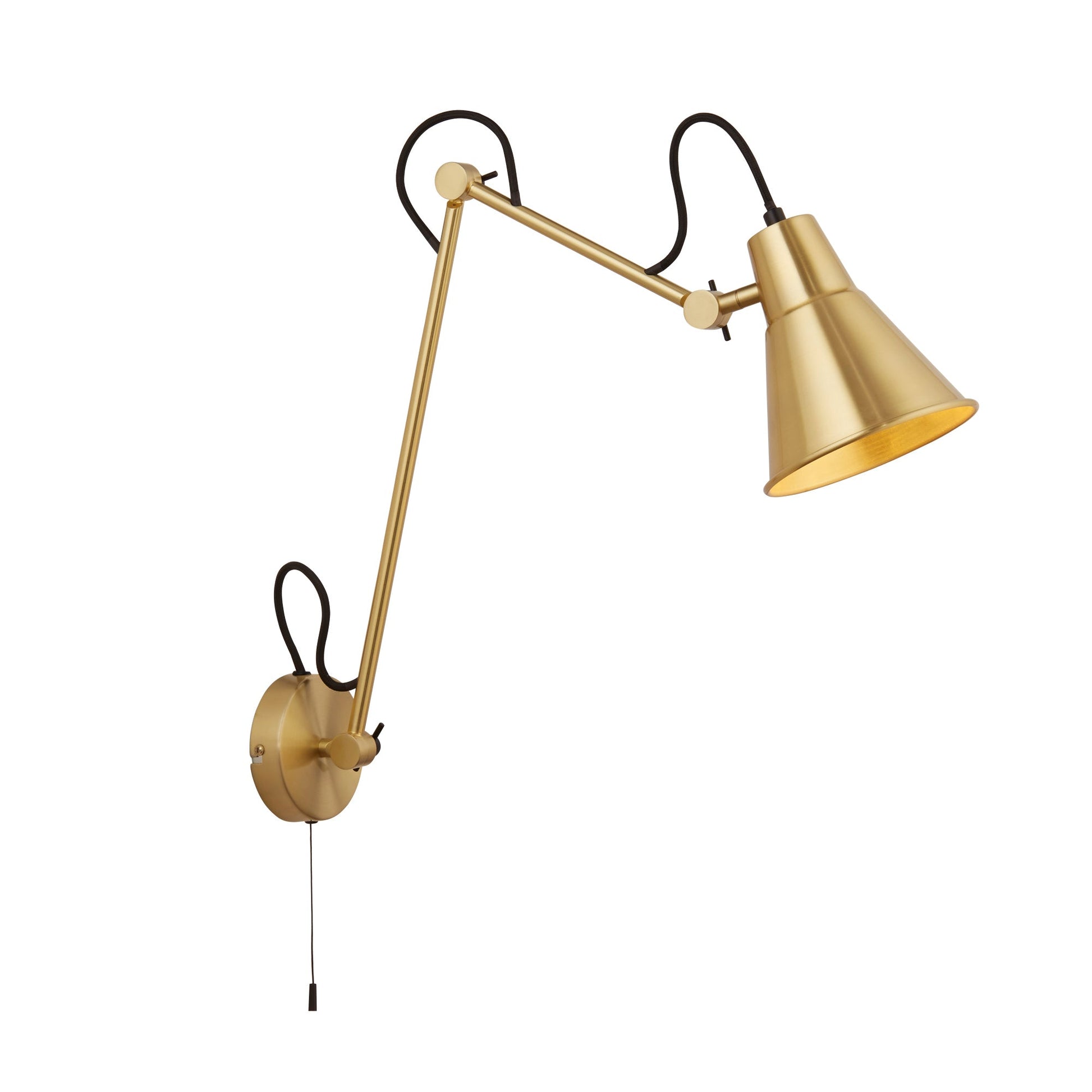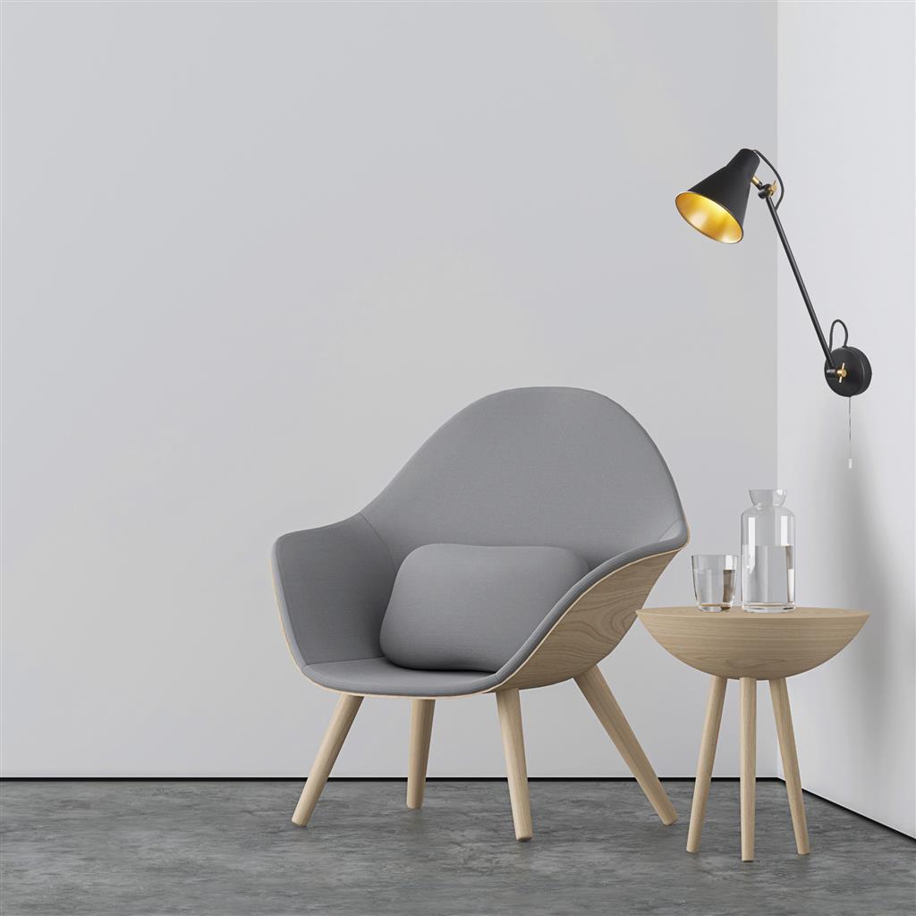 For a statement piece, add the Swing Arm matt black and gold wall bracket to any modern home setting. The inside of the sleek black shade is gold for a final touch of elegance. Alter the direction of the light to provide either a focused beam or for a general spread of light. This item is operated by a black pull switch.
